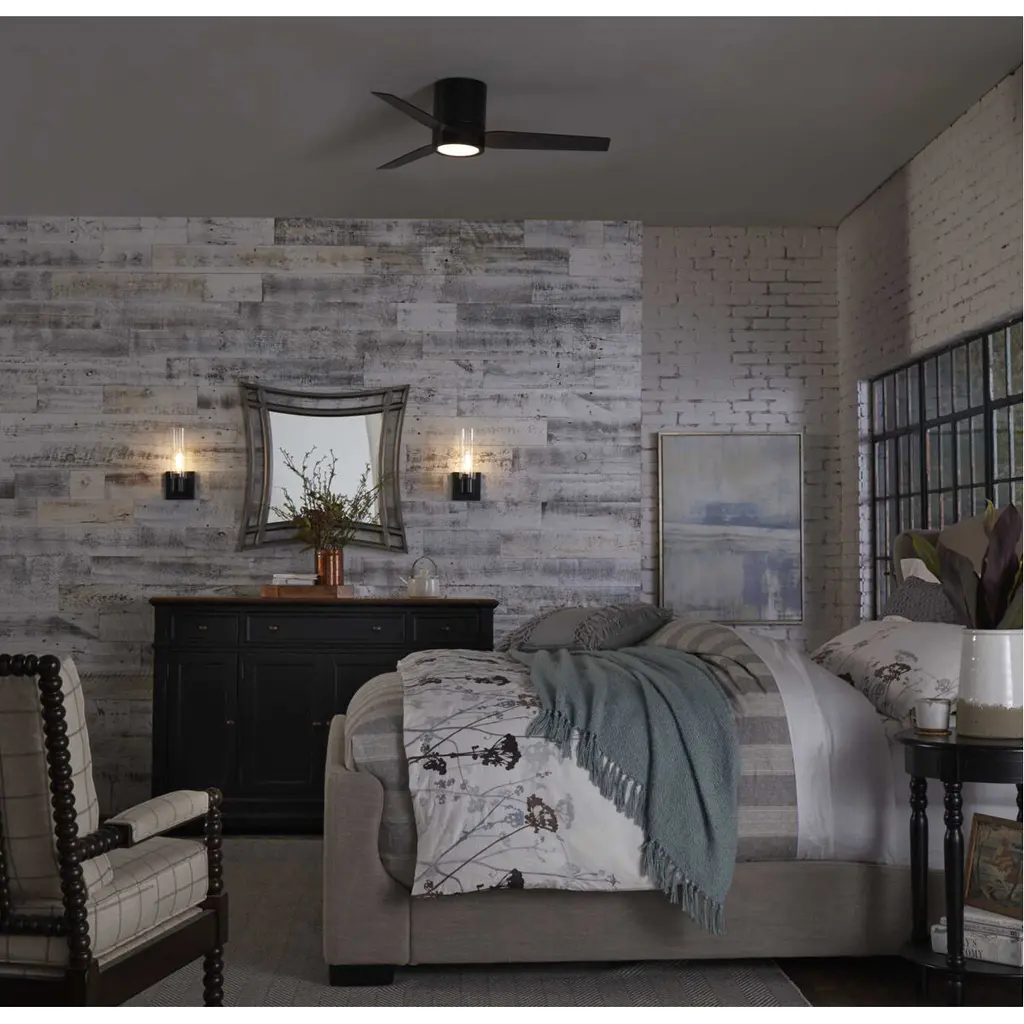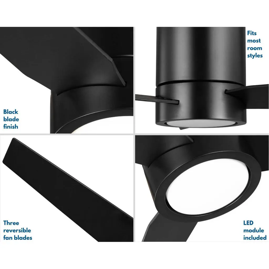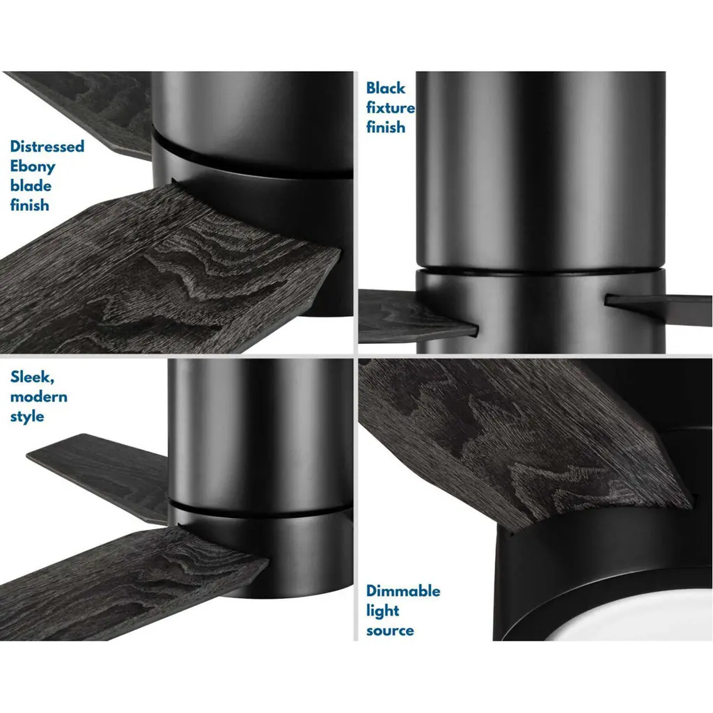 Experience an ideal blend of style and function with the Braden Collection 44-Inch 3-Blade Matte Black LED Mid-Century Modern Indoor Hugger Ceiling Fan. Three reversible plywood blades are coated in black and distressed ebony finishes for extra design versatility. The fan's center is coated in a beautiful matte black finish to accentuate its modern character. A remote control with batteries is included so you can adjust full-range dimming and fan speed without breaking a sweat.