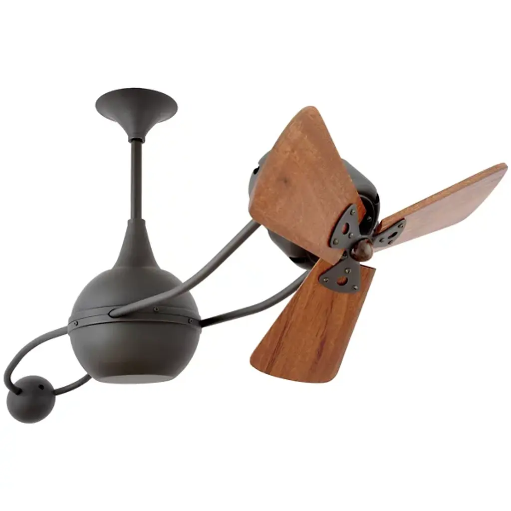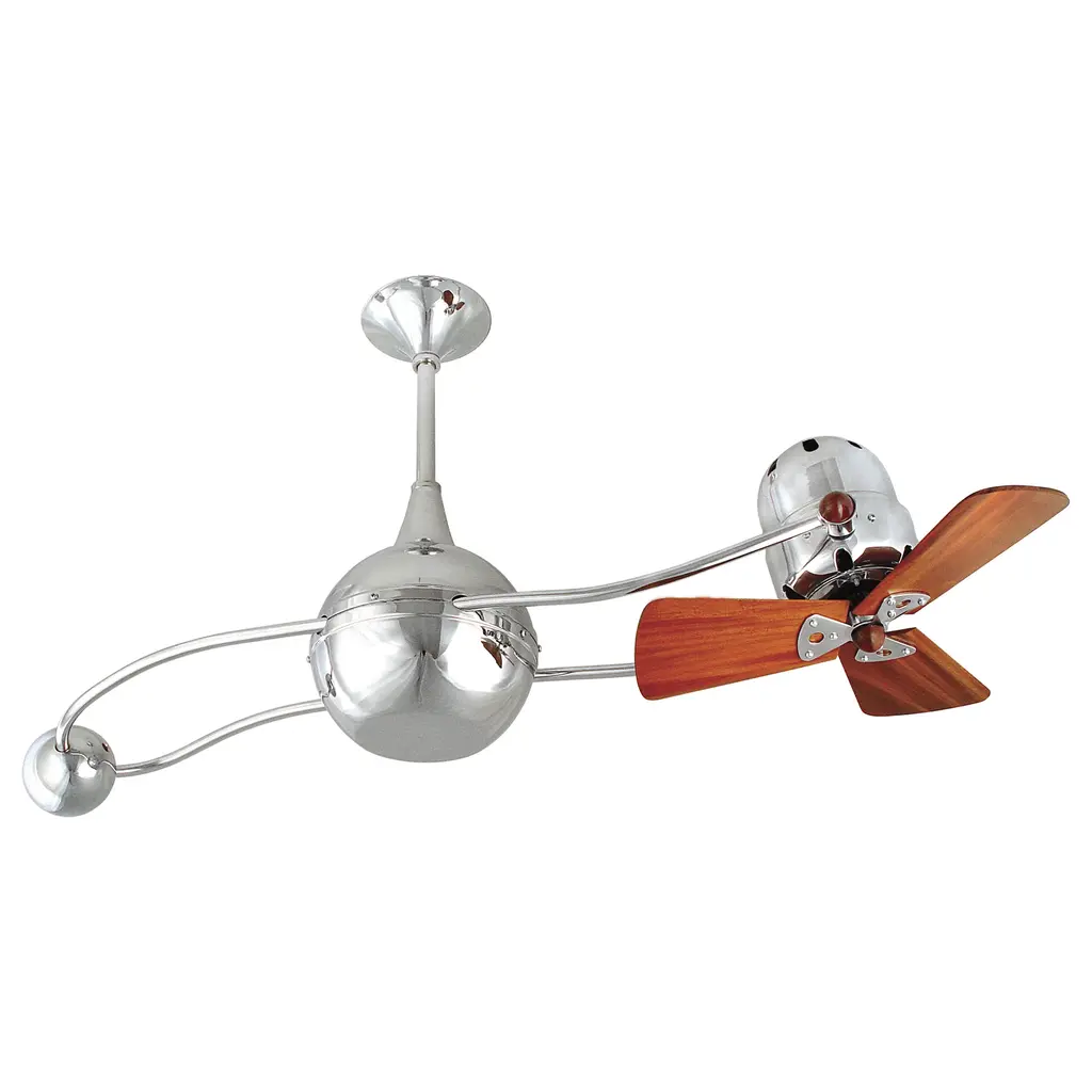 The Brisa 2000 is the most unique rotational ceiling fan. Like satellites orbiting a planet, the Brisa's select mahogany blades and lunar counterweight gently orbit about its spherical gear housing. The motor head can be infinitely positioned in a 180-degree arc for optimum air movement; the greater the angle of the motor to the horizontal support rods (up or down), the faster the axial rotation. A slow, controlled axial rotation is achieved by both motor head position and fan blade speed. Features