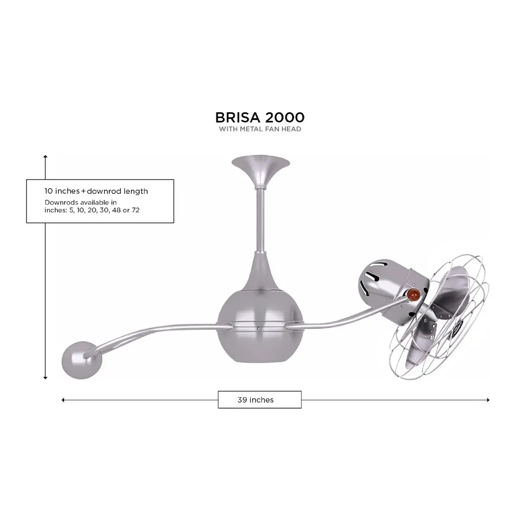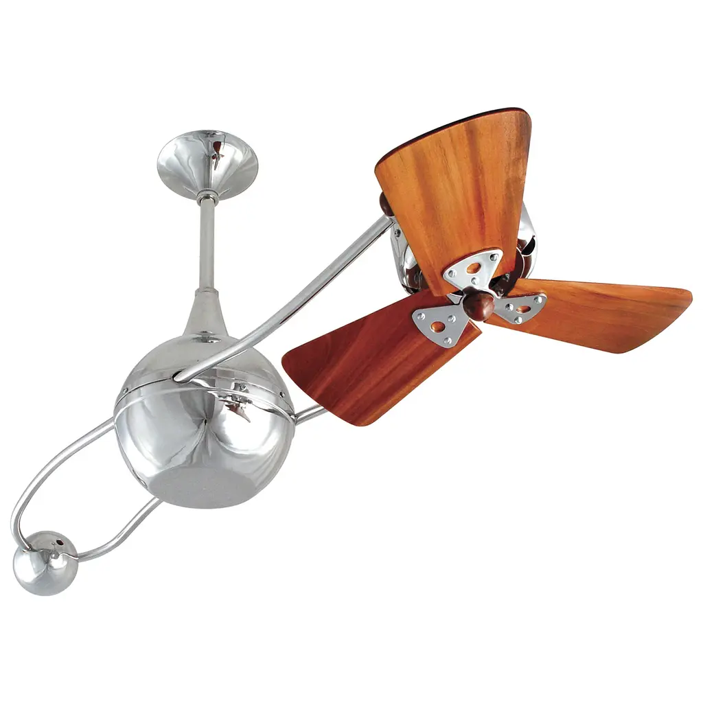 The Brisa 2000 is the most unique rotational ceiling fan. Like satellites orbiting a planet, the Brisa's select mahogany blades and lunar counterweight gently orbit about its spherical gear housing. The motor head can be infinitely positioned in a 180-degree arc for optimum air movement; the greater the angle of the motor to the horizontal support rods (up or down), the faster the axial rotation. A slow, controlled axial rotation is achieved by both motor head position and fan blade speed. Features