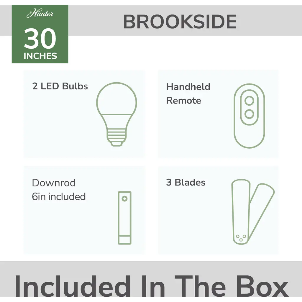 This 2 light Ceiling Fan from the Brookside collection by Hunter Fan will enhance your home with a perfect mix of form and function. The features include a Matte Black finish applied by experts. This item qualifies for free shipping!