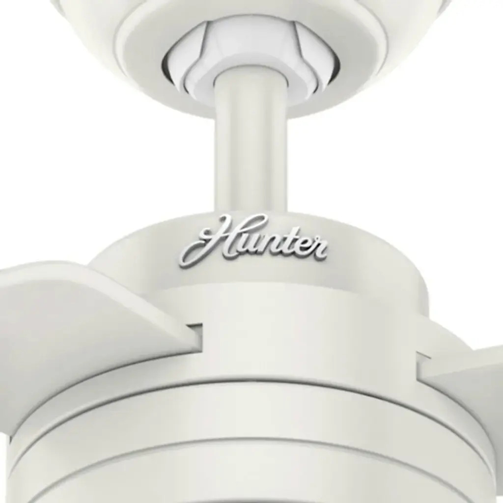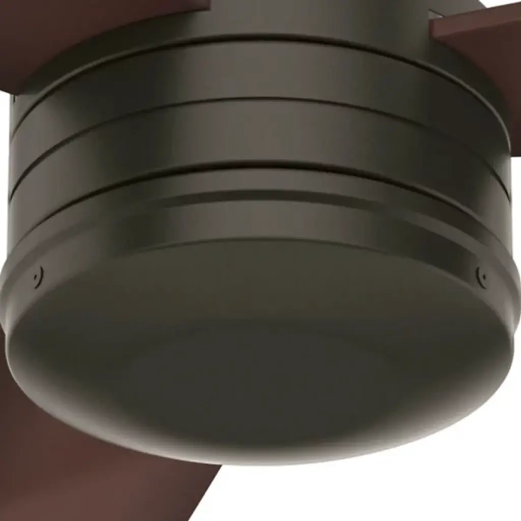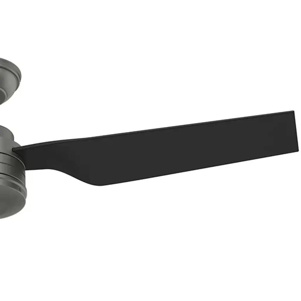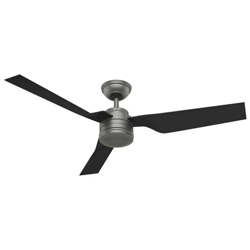 A sleek modern piece that brings a welcoming dose of style to the home. The Cabo Frio Ceiling Fan from Hunter Fans utilizes clean and smooth metal with natural wood to create a complementary dynamic that instantly enhances the atmosphere. The thin blades have a unique flowing shape to them that ensures the air is efficiently circulated, keeping the room warm or cool throughout the year.