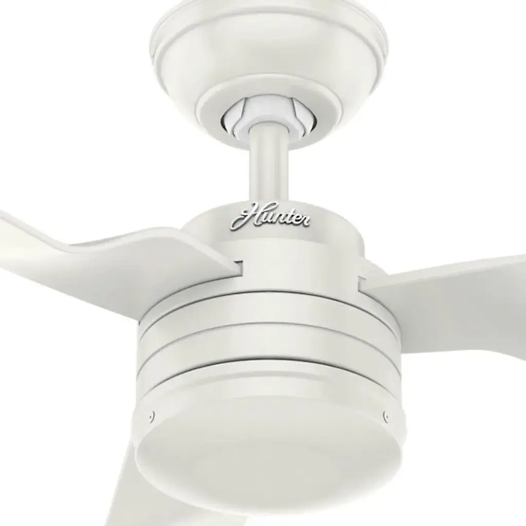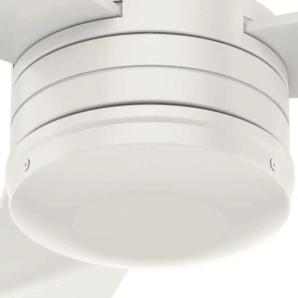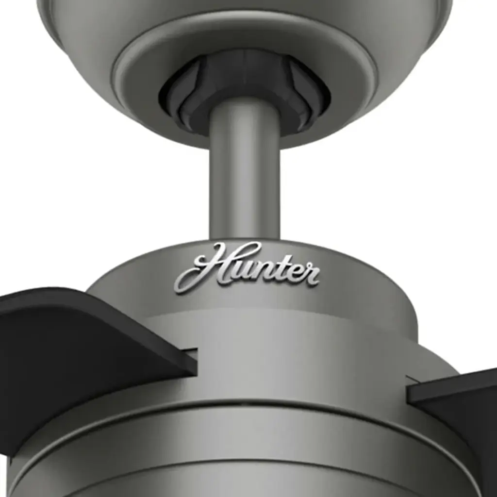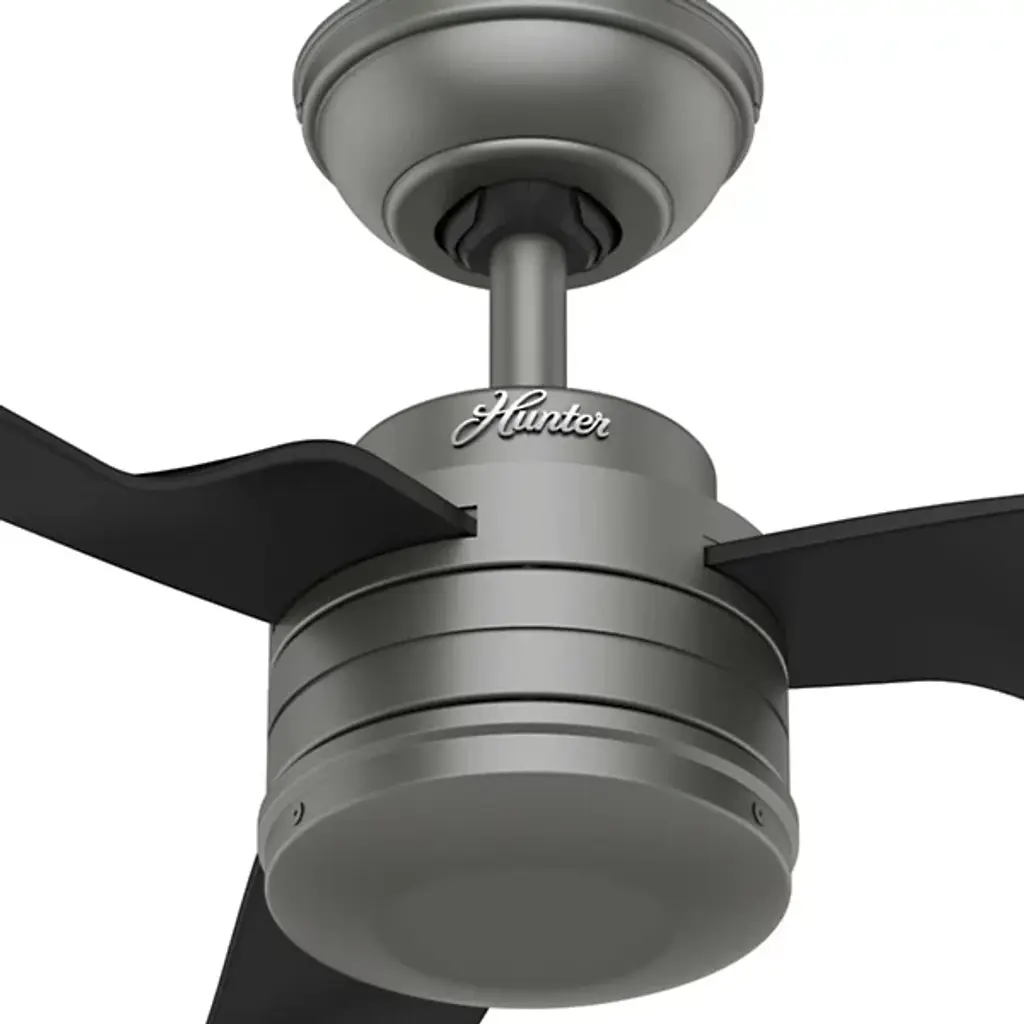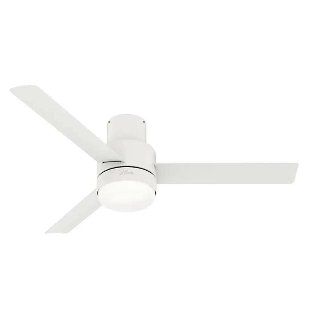 A sleek modern piece that brings a welcoming dose of style to the home. The Cabo Frio Ceiling Fan from Hunter Fans utilizes clean and smooth metal with natural wood to create a complementary dynamic that instantly enhances the atmosphere. The thin blades have a unique flowing shape to them that ensures the air is efficiently circulated, keeping the room warm or cool throughout the year.