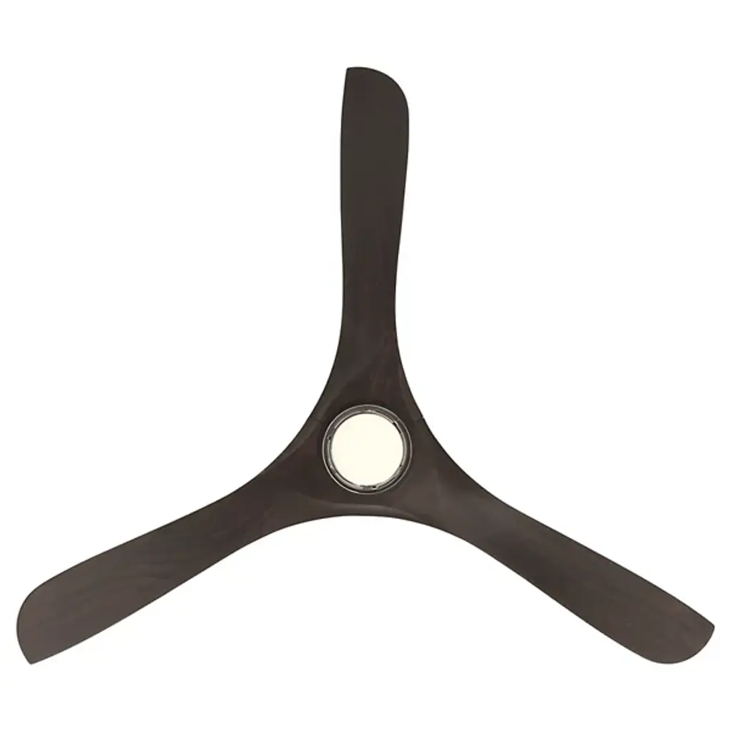 The Carve Indoor/Outdoor Smart LED Ceiling Fan from Modern Forms blends organic beauty with modern technology, featuring a trio of precisely crafted natural wood blades and a refined housing unit. Damp-rated for indoor or covered outdoor use, it includes an optional cover in a matching wood or industrial finish. An LED luminaire with an artisan-crafted diffuser is also available. Integrate this fan with smart home systems via the Modern Forms app and voice control devices.