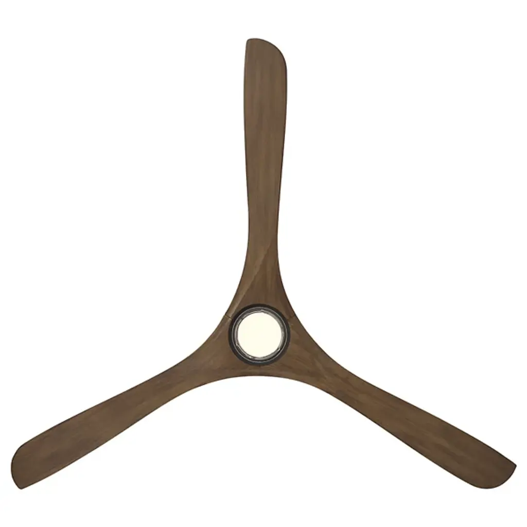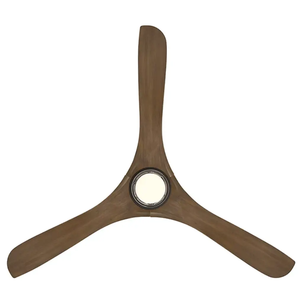 The Carve Indoor/Outdoor Smart LED Ceiling Fan from Modern Forms blends organic beauty with modern technology, featuring a trio of precisely crafted natural wood blades and a refined housing unit. Damp-rated for indoor or covered outdoor use, it includes an optional cover in a matching wood or industrial finish. An LED luminaire with an artisan-crafted diffuser is also available. Integrate this fan with smart home systems via the Modern Forms app and voice control devices.