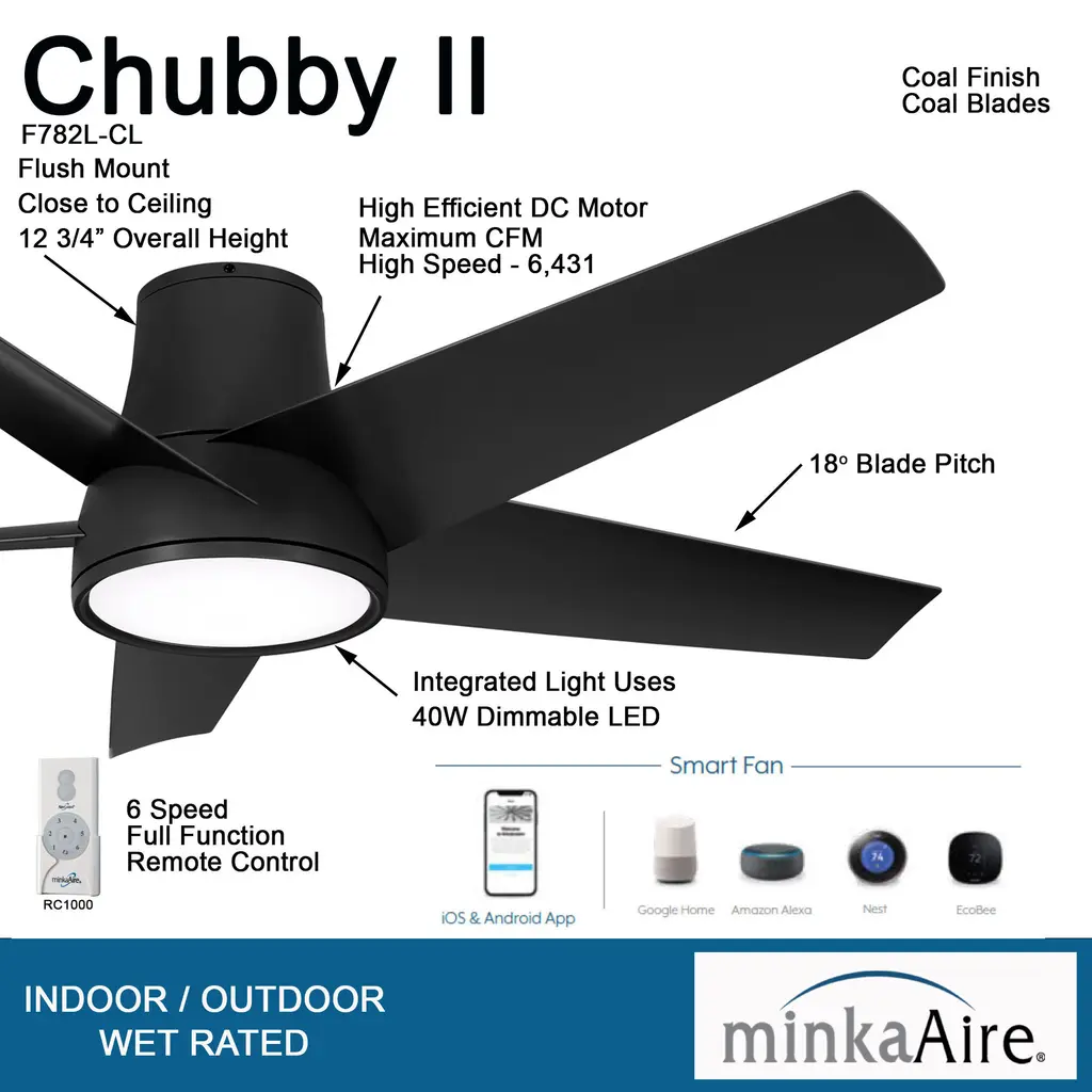 This 1 light Indoor/Outdoor Ceiling Fan from the Chubby II collection by Minka-Aire will enhance your home with a perfect mix of form and function. The features include a Coal finish applied by experts. This item qualifies for free shipping!