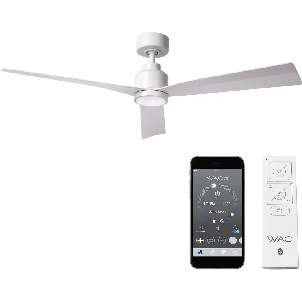 A smart fan with minimalist appeal. It perfectly suits a range of design styles without overpowering. Convenient wall and remote control options provide flexibility and ease of use, while a whisper-quiet and energy-efficient DC motor powers the ABS blades. Make it a smart fan by downloading the WAC Lighting app to control fan speed, use smart features like breeze mode, adaptive learning, create groups, and reduce energy costs.