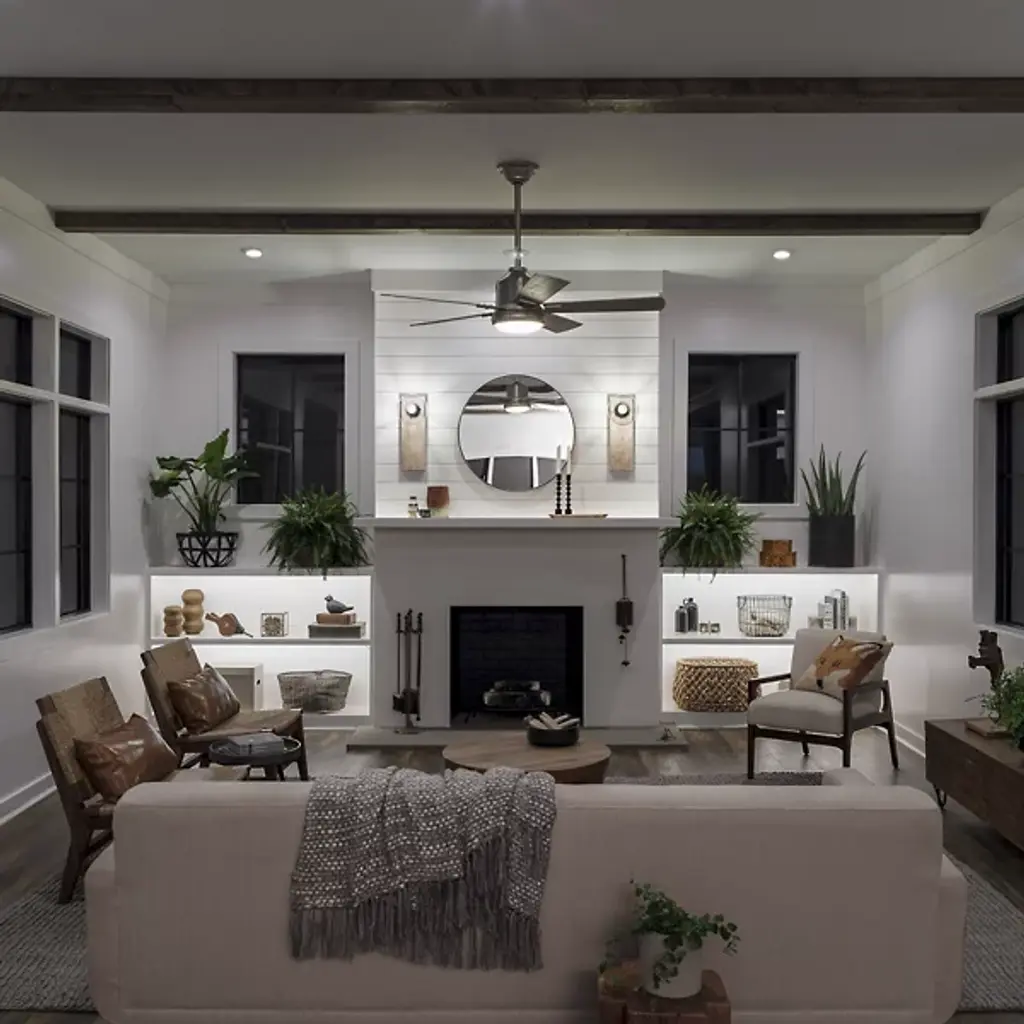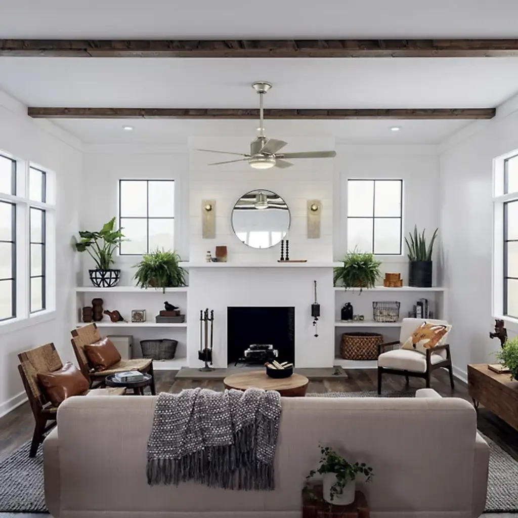 Underlined by familiar accenting, the Colerne LED Ceiling Fan with Light from Kichler puts a smile on one’s face with a surge of refreshing air. It’s a piece combining rustic charm with industrial sophistication. Crafted from metal, the eyes are drawn to the fan’s hardware punctuated by bold rivets. For an antique touch, a wood-like finish covers the body and blades with rich organic texture. At the base, an opal diffuser pops like a bright button when the light comes on. The surrounding blades spin swiftly across various speeds for a tailored atmosphere. An included wall control makes using the piece a breeze.