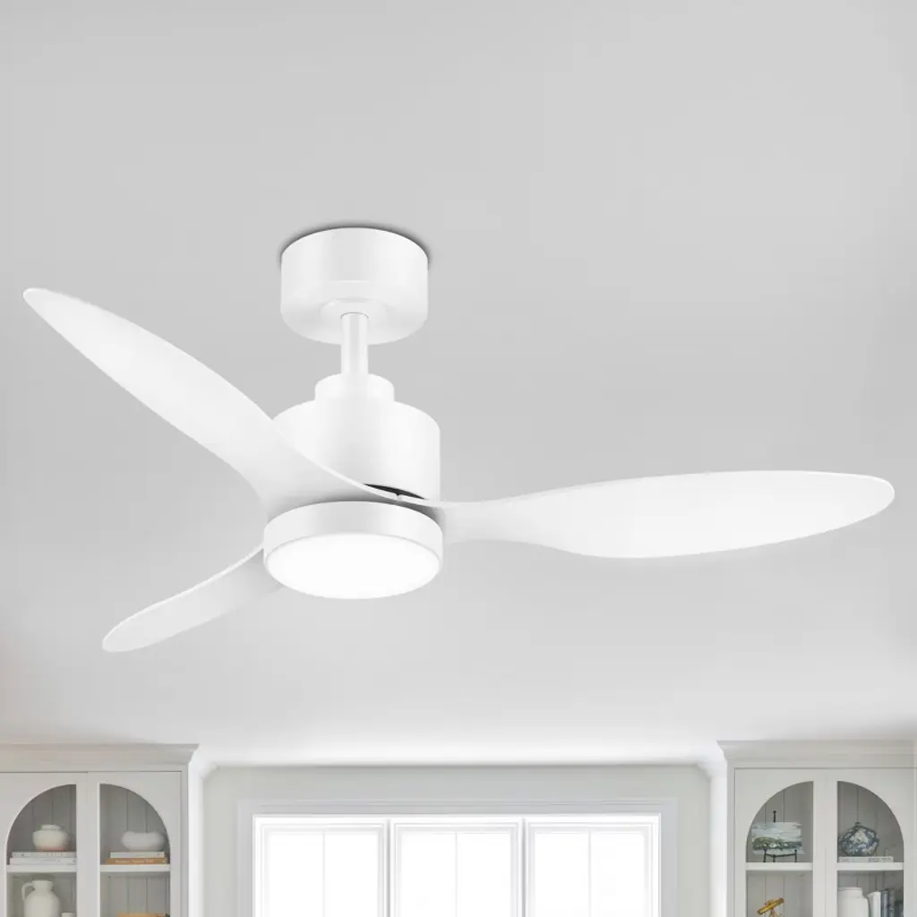 The Colgin LED Ceiling Fan from Visual Comfort Fan combines clean lines with strong performance, a bold breeze delivered with style. Designed by Drew & Jonathan Scott, this fan features a contoured ceiling mount and slender downrod that support a rounded motor housing with integrated LED lighting. Three rounded blades extend outward, delivering airflow at six adjustable speeds. The fan is Energy Star Certified for optimal efficiency and damp-rated for indoor or covered outdoor use, a smart solution for spinning up a comfortable breeze or adding even illumination to interiors.
