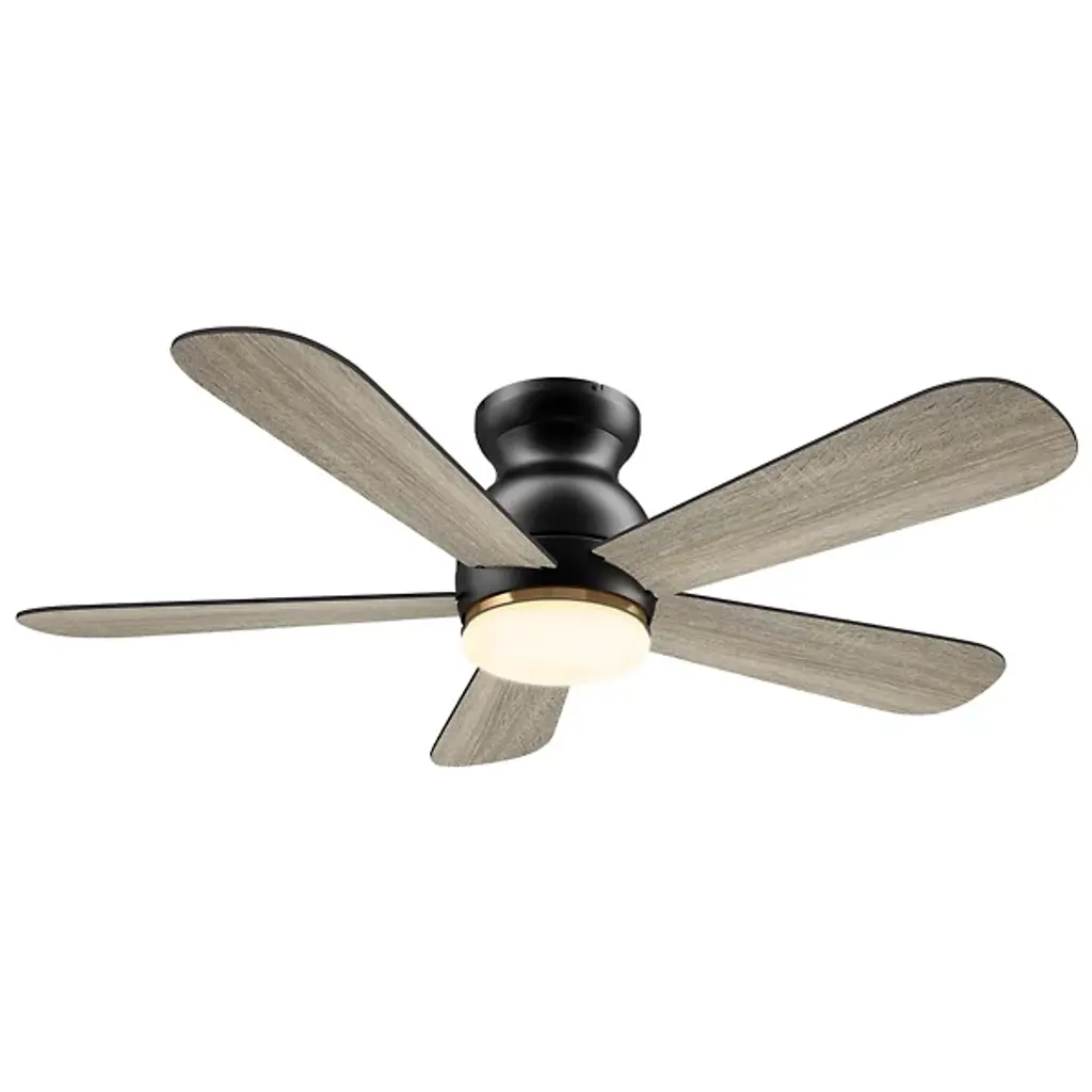 A statement of elegance inside or outside. Deep functionality matches with sophisticated mid-century modern styling in the Collier LED Ceiling Fan from Hinkley. Sloped ceiling adaptable, this piece crowns your spaces with a beautiful combo of wood and metal. The metal body carries a sleek edge while showing its retro character with accenting knobs and hinges. Handsome wood blades framing the piece warm it up with a natural grain texture. These blades spin across 6-separate reversible speeds with help of an included wall control. You get an extra layer of functionality from the LED module inside. The LED light filters through an etched opal diffuser, leaving you with a spacious glow. Comes with Hinkley's HIRO smart fan control system allowing you to control your fan using a smartphone app or voice assistant like Amazon Alexa or Google Assistant.
