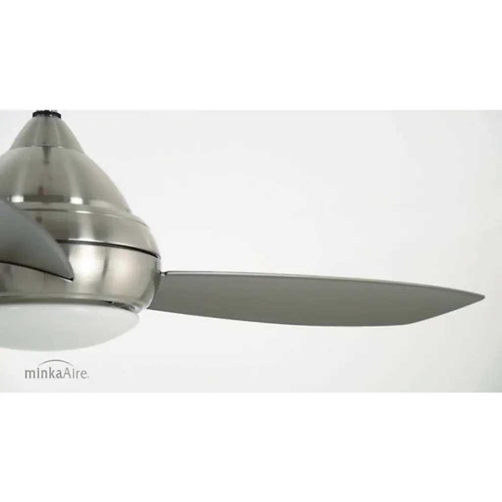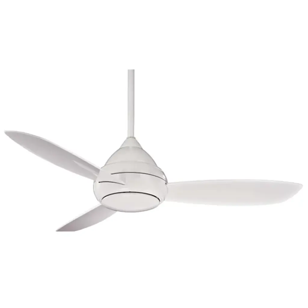 Add a splash of interest with this uniquely modern profile. The Concept I Wet 52" Ceiling Fan by Minka Aire Fans keeps your space cool and illuminated. This fixture showcases three blades that are made of ABS plastic and offer three-speed levels. This ceiling fan is capped with a curved shade, and the LED light housed within emits soft downlighting and comes with a full range dimmer that lets you customize the light intensity. The fan is suspended from the round canopy with a sleek downrod.
