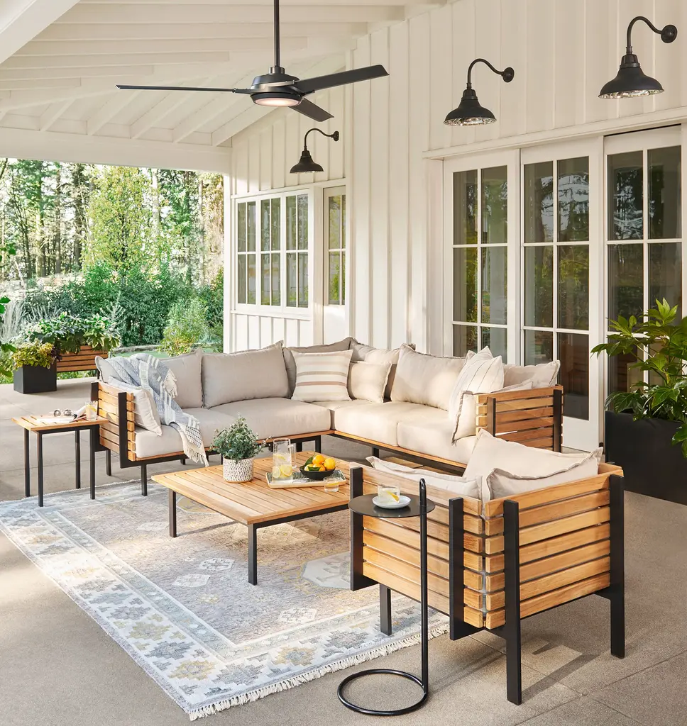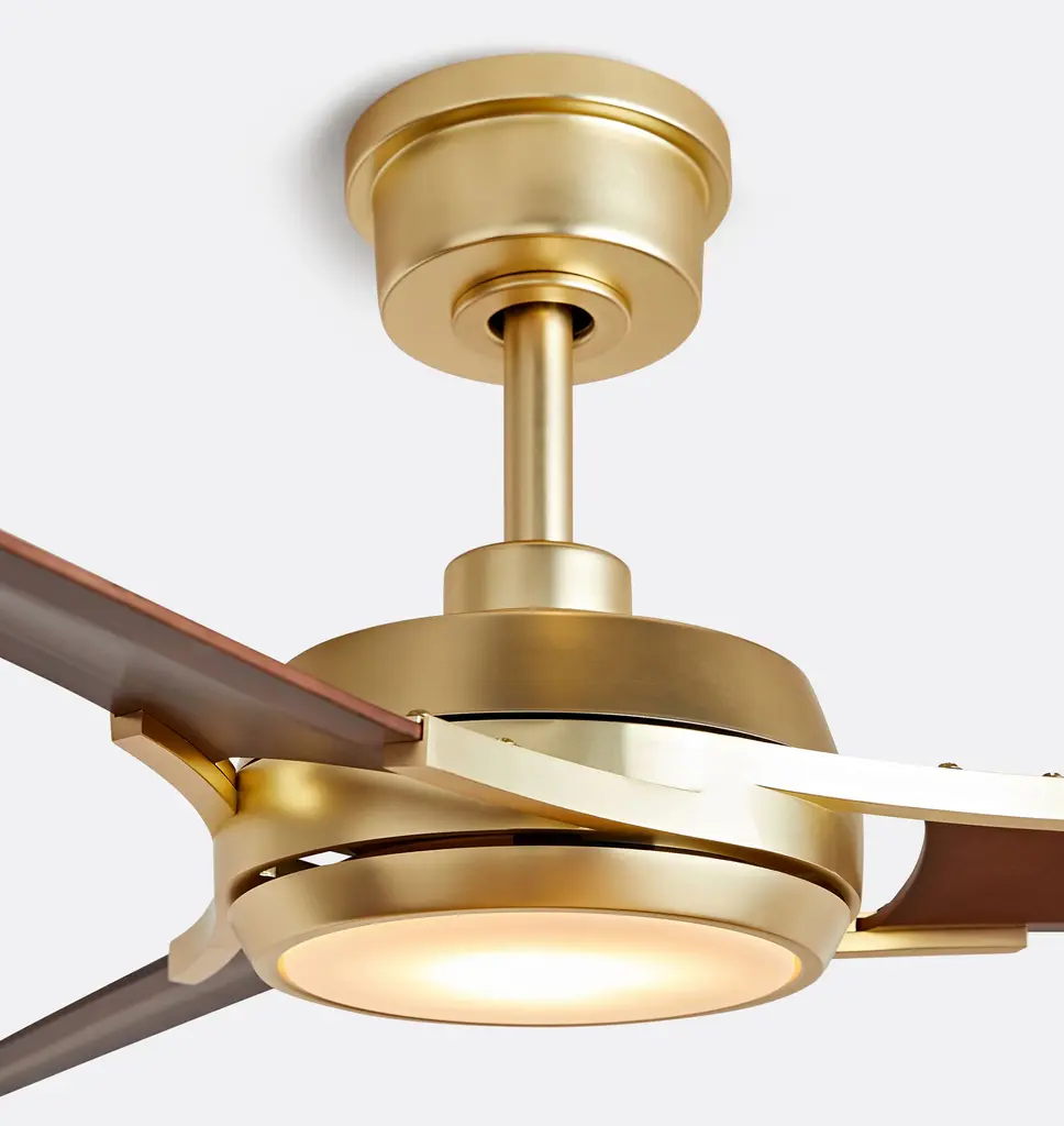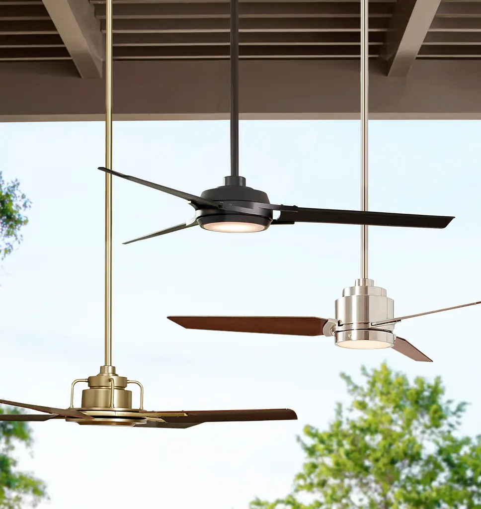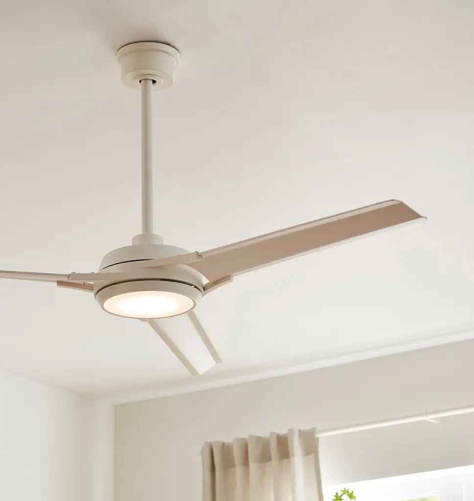 Sleek industrial 3-blade ceiling fan with a minimal profile and an inset LED light. Its energy-efficient design features unique blades that are angled and tapered to achieve the ideal pitch for maximum airflow and a DC motor that uses 70% less energy than conventional alternatives. Details You'll Appreciate Energy-saving DC Motor Integrated LED light 6 speeds with reversible motor Remote control included; not for use with a Rheostat or dimmer switch Additional downrod lengths available Product Specifications Aluminum body with steel canopy and ABS blades Blades and 4-1/2" downrod included; additional downrod lengths available Hang-straight joint accommodates a slight ceiling slope up to 19 degrees Electricity use (high speed): 23W 16W LED light output Lumens: 1100, Kelvin: 3000K Airflow Effiency: MIN 232.98 cfm per watt Air flow (high speed): 6111 cfm Hardwired; professional installation recommended For indoor and covered outdoor use (UL Rated Damp) Imported