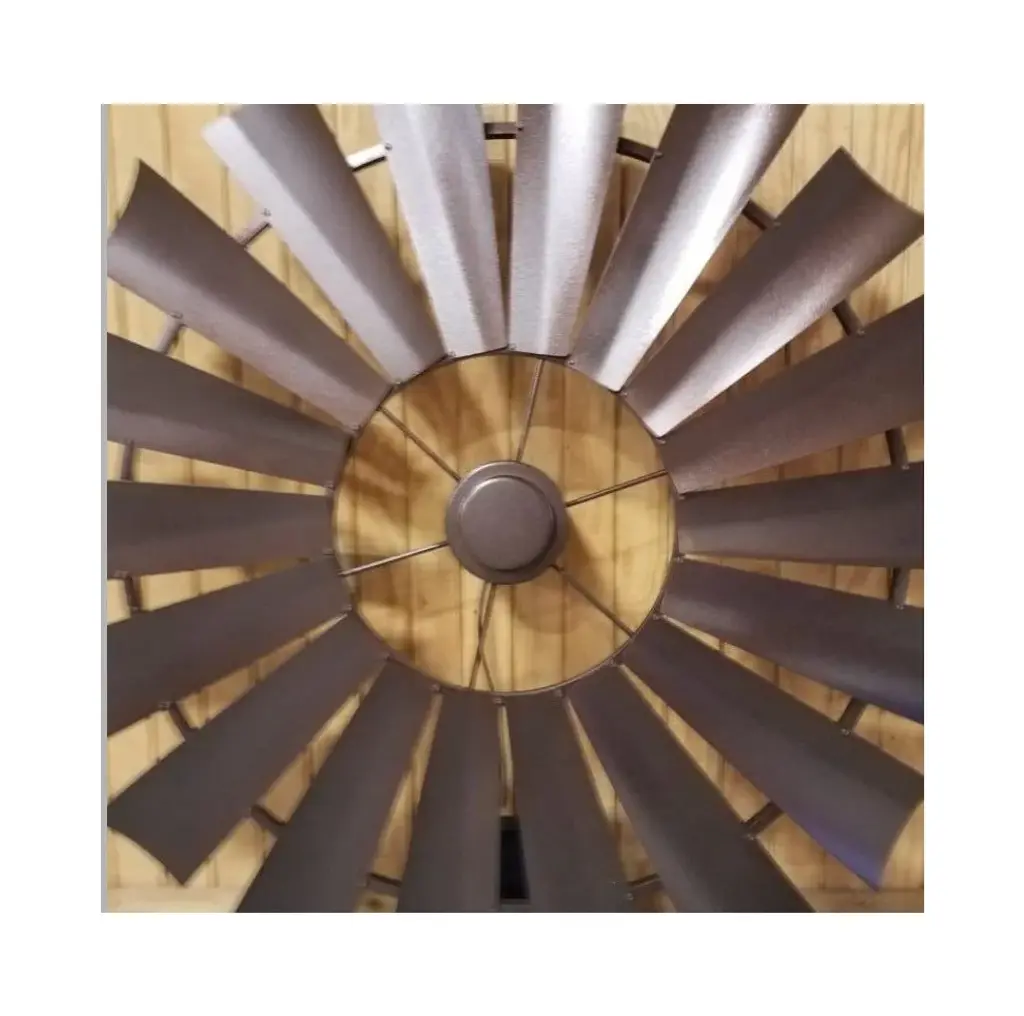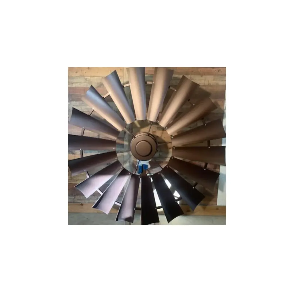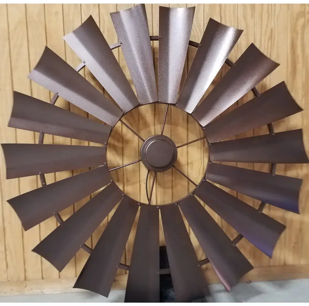 72 Inch Copper Vein Windmill Ceiling Fan, The American Fan- The look of copper vein finish on metal gives the appearance of hammered metal with copper veins flowing throughout. Smooth and mild texture. A Windmill Ceiling Fan with a copper vein finish becomes a stylish home accent for your cozy home decor.Our windmill fans are hand-crafted, American made and truly one of a kind. We are a Texas family-owned and operated business. Each fan is constructed of durable steel and lightweight aluminum allowing for stress-free installation and perfect for interior or exterior placements.Our windmill ceiling fans work well in many settings - dining rooms, great rooms, bedrooms, barns and barndominiums, new builds and renovations, outdoor spaces, vaulted ceilings, ranch houses, farmhouses, cabin living.Easy Installation - standard ceiling supports and electricalEach fan is unique and one of a kindHand-crafted and American madeEighteen Blades for optimal balance (14 blades on the 46")Available in 46", 52", 60", 66", 72", 84" and 96" diameter sizingEfficient motor integration designNone or minimal assembly requiredConstructed only of quality steel and aluminum. Absolutely no molded plastic and particle board!Variable Speed, Geared Motor (Constant gear noise)Includes wall mount variable speed control box/converter, 115 Volt AC input converts to DC current and uses normal electrical wire to fan. Must be used with this motor. Dimensions 5" x 2" depth x 3 "width.CFM rating from 3000-7000Free consultation and adviceAccessory Kit includes everything needed for installationFamily owned and operatedEndless Custom Finishes we can match fixtures, paints, lighting, and moreFan weight is approximately 50-65lbs depending on the size and finishOutdoor damp ratedUp Light available upon request additional feeCan be used on a flat or sloped ceilingWe are the only Windmill Ceiling Fan Company that provides the unique aluminum lightweight, 18 blade design, and custom finishes.Note: Our fans are not mass-produced. Each of our windmill ceiling fans are hand-crafted, they might have slight variances and the rings may not be perfectly round or flat, very similar to an actual windmill in a pasture.Every fan is built, assembled, tested, and balanced with your blades and down rod. We remove the blades for shipping (smaller fan blades can be remain attached upon request). We number each blade and number the frame so you will get the same balanced effect when reattached. Our fans are shipped all over the US and internationally in custom packaging (70"x70"x20").Each fan is shipped with everything you need to hang and operate the fan, instructions, 9" down rod (any size down rod can be requested), c channel steel ceiling mount, and wall control box/converter.
