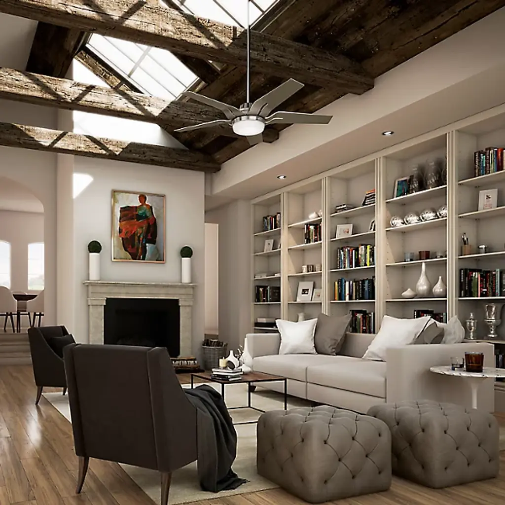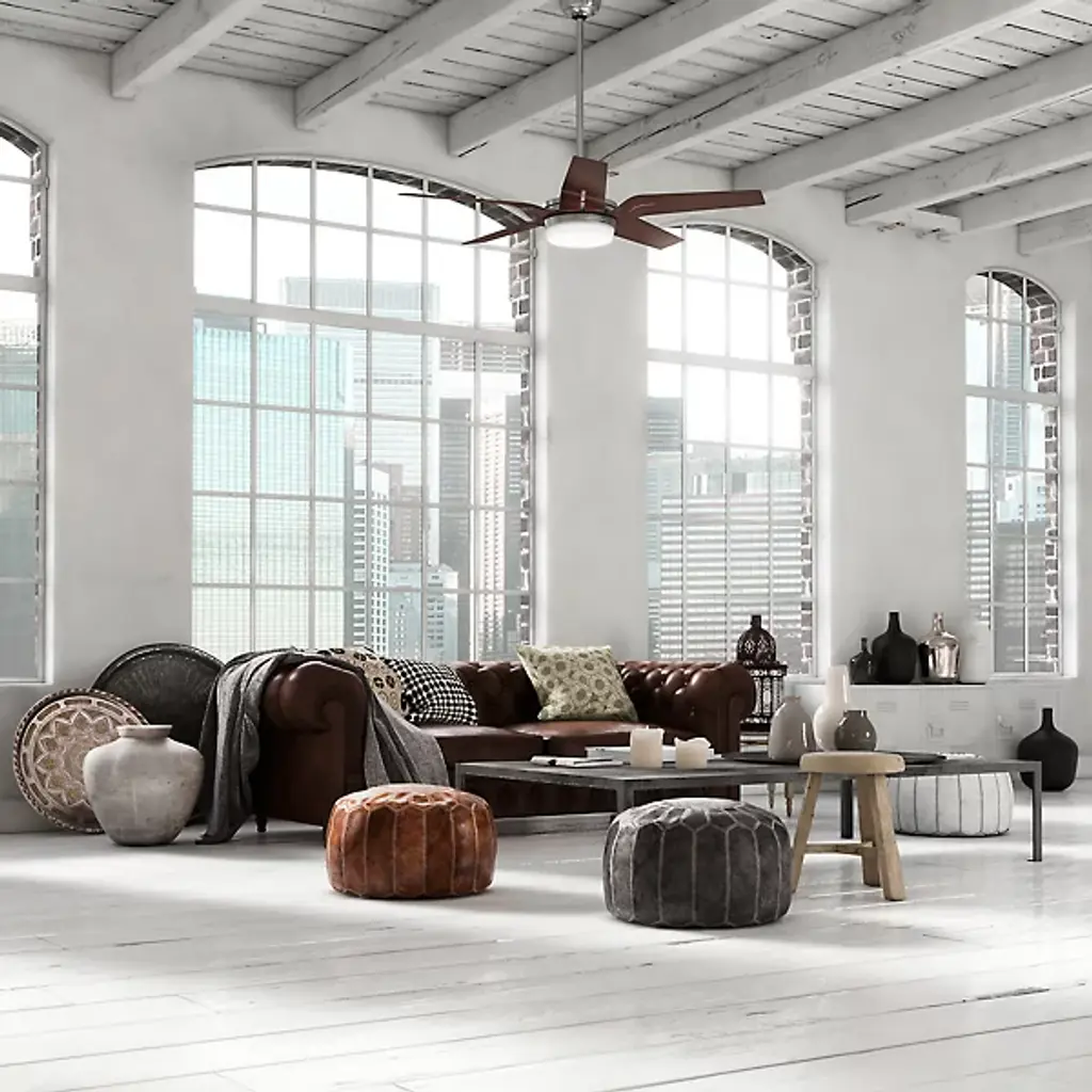 Inspired by the trends of Scandinavian interior design, the Casablanca Fan Company Correne Ceiling Fan offers a unique spin on the mid-century use of bent plywood and modern aesthetics. Featuring 5 intelligently designed ribbon-like blades, the Correne Ceiling Fan showcases a smooth, contortional movement that allows it to stand apart from other ceiling fans. The Correne Ceiling Fan includes a universal handheld remote with reverse functionality with purchase.
