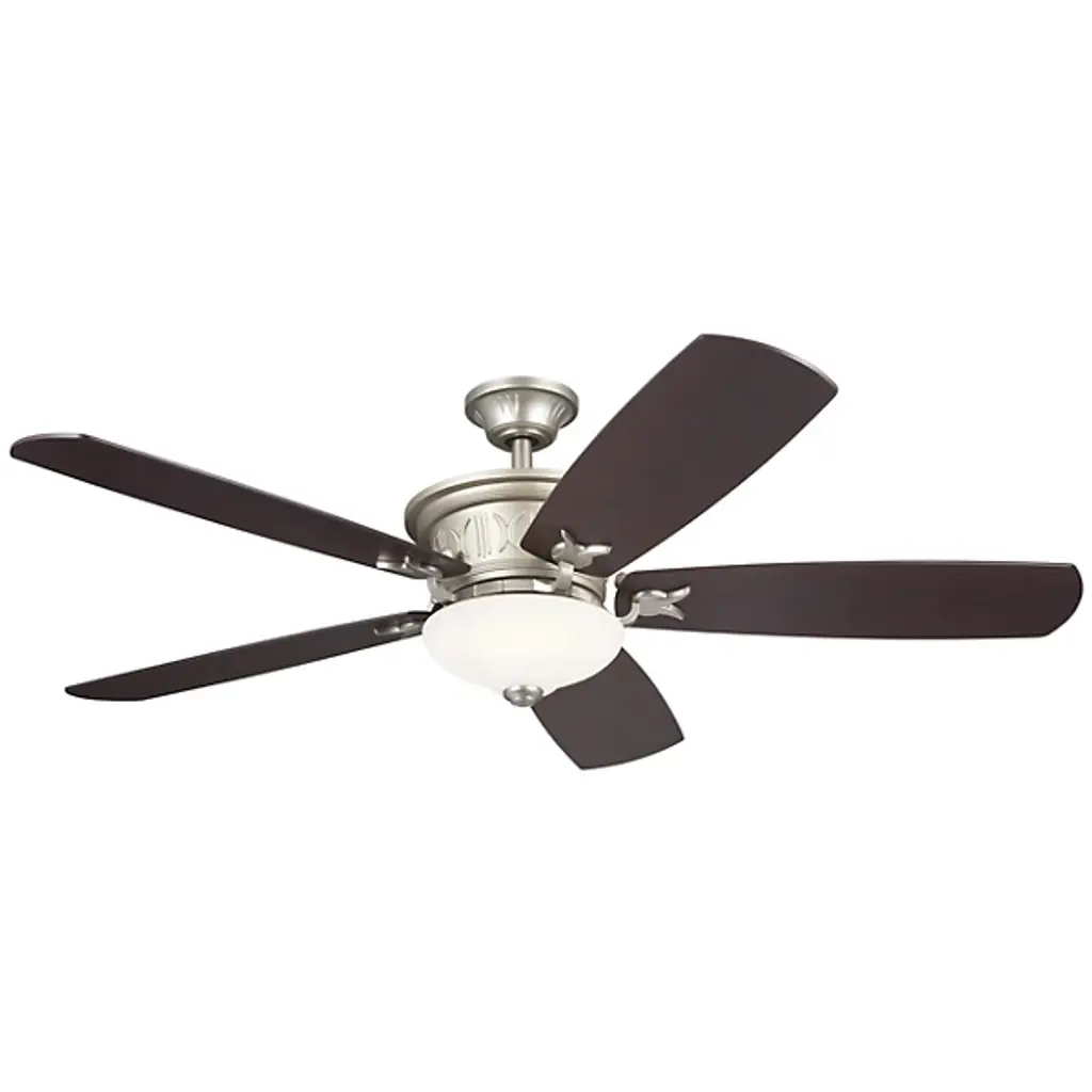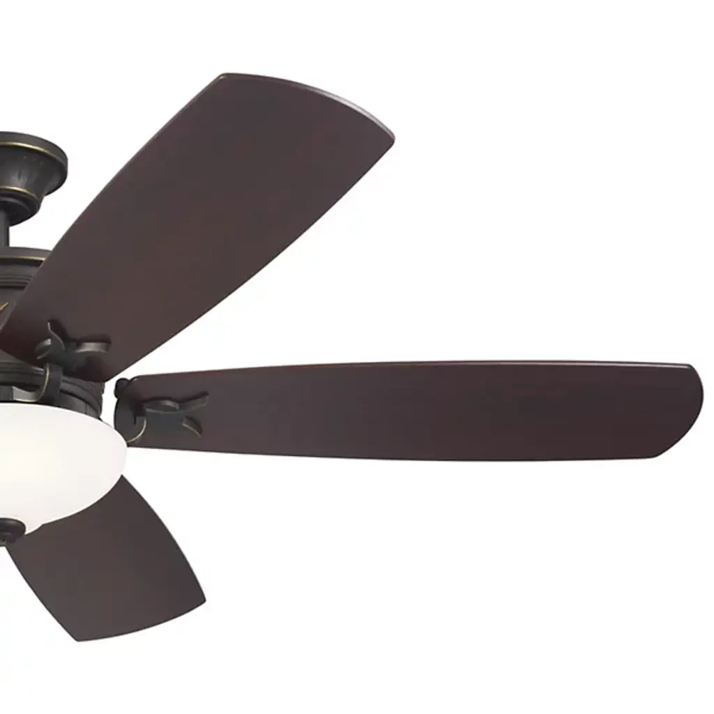 Stay comfortable with the Crescent LED Ceiling Fan by Kichler. A powerful AC motor rests inside of a metallic encasement and provides power for a group of rounded, wide blades that rotate in the air. This fan boasts reversible blades which allow you to control draft direction with ease. With 3 fan speeds, you get a fully customize the strength with which your room’s air is circulated. An LED is centrally placed below the fan’s blades so that you can effortlessly illuminate your environment.