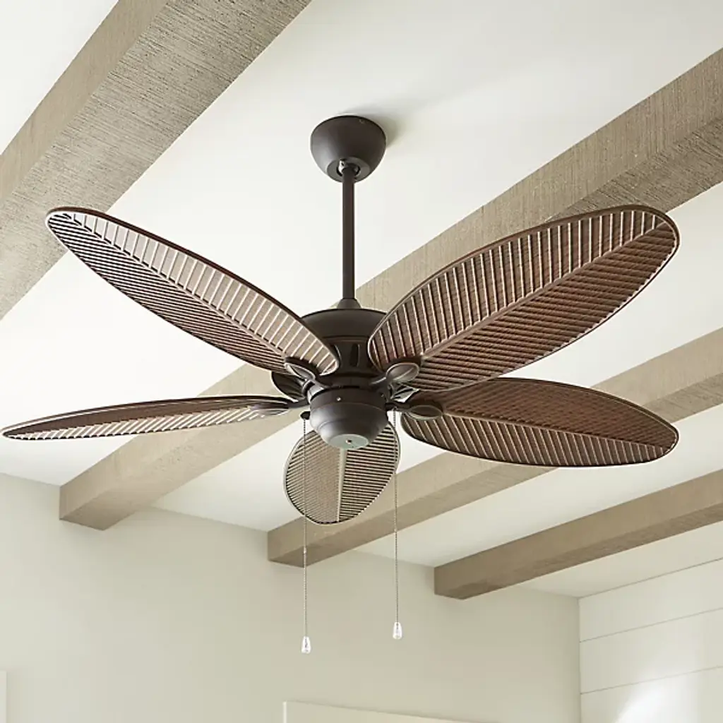 Welcome to the tropics. Designed for use in most indoor and outdoor rooms (up to 150 square feet), the Generation Lighting, formerly known as Monte Carlo Fans, Cruise Outdoor Ceiling Fan features 5 palm-like fan blades available in two distinct finish options. Operates with 3 forward/reverse fan speeds and can be mounted as a suspension fan with included hardware.