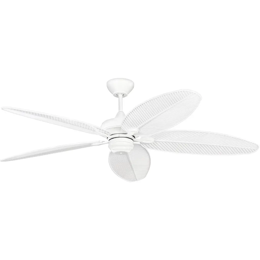 Welcome to the tropics. Designed for use in most indoor and outdoor rooms (up to 150 square feet), the Generation Lighting, formerly known as Monte Carlo Fans, Cruise Outdoor Ceiling Fan features 5 palm-like fan blades available in two distinct finish options. Operates with 3 forward/reverse fan speeds and can be mounted as a suspension fan with included hardware.