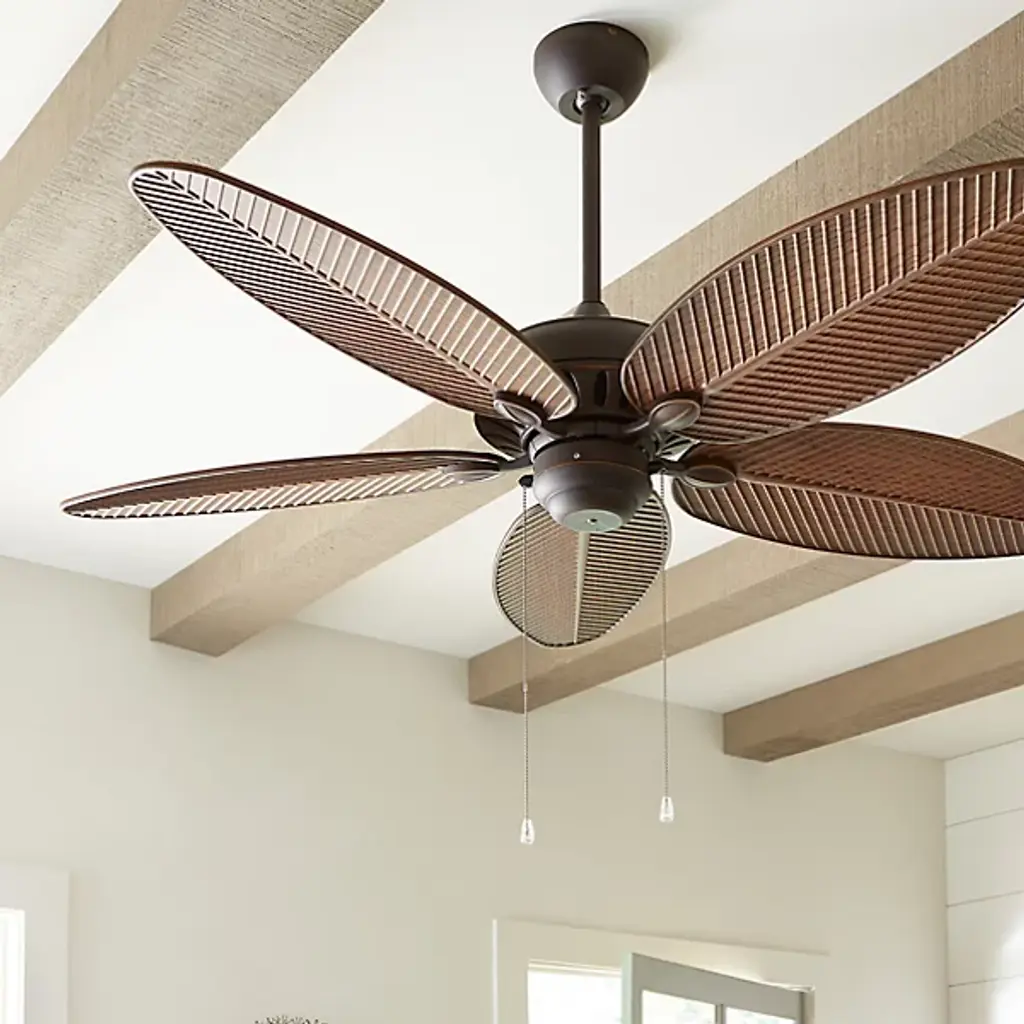 Welcome to the tropics. Designed for use in most indoor and outdoor rooms (up to 150 square feet), the Generation Lighting, formerly known as Monte Carlo Fans, Cruise Outdoor Ceiling Fan features 5 palm-like fan blades available in two distinct finish options. Operates with 3 forward/reverse fan speeds and can be mounted as a suspension fan with included hardware.