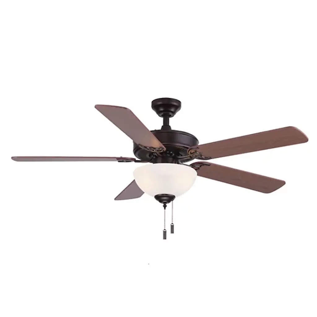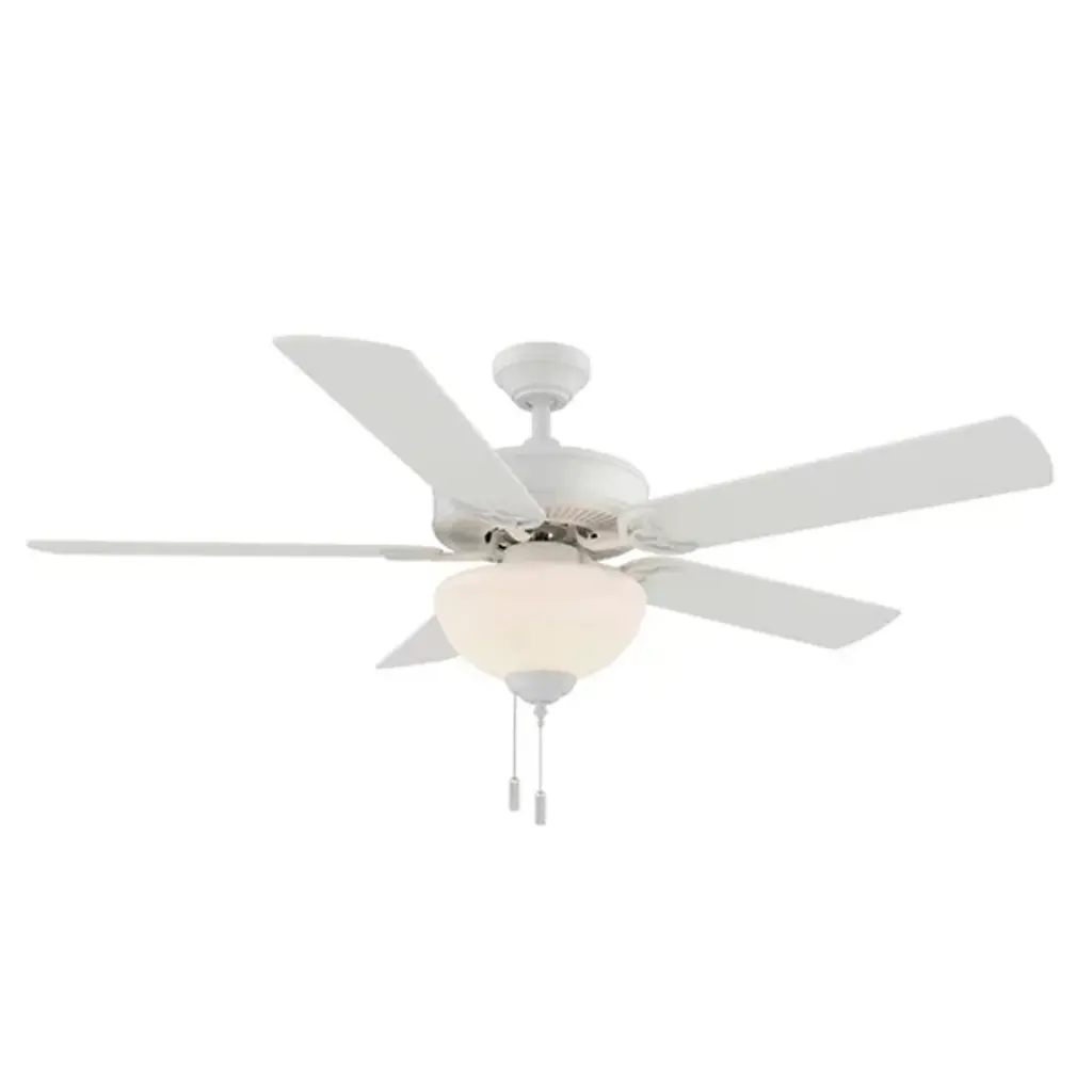 A smooth, inviting fixture designed to be the center of attention, the Dalton LED Ceiling Fan from Wind River elevates modern spaces with ease. The metal body extends five matching thin blades, each slightly curved. Adorned with intricate detailing, the blades efficiently push the air, bringing a pleasing temperature to the space. A single, bowl-shaped glass shade rests on the bottom of the piece and encases a pair of integrated, energy-efficient LEDs. Shining a warm, inviting glow, the LEDs add relaxing ambiance to the room.