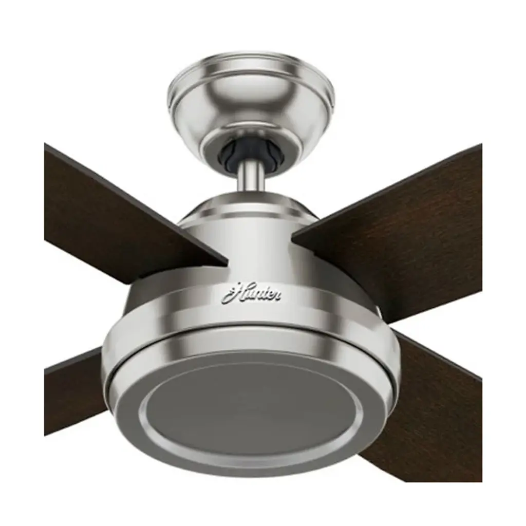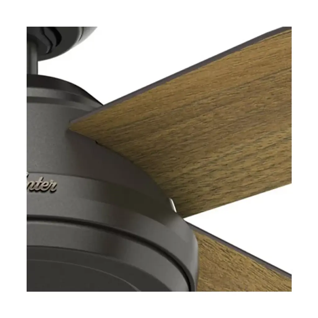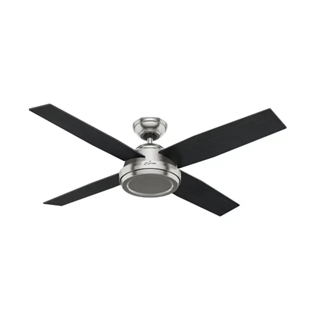 Contemporary in design, the Dempsey Ceiling Fan by Hunter Fans easily fits into living spaces without drawing too much attention itself. Four wood-toned ceiling fan blades efficiently cool a room in as little time possible. A sleek and minimal design make it ideal for bedrooms, living rooms, and offices.