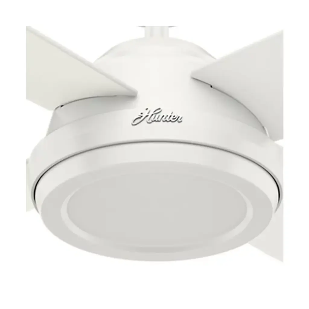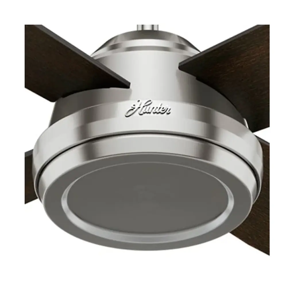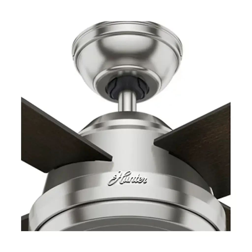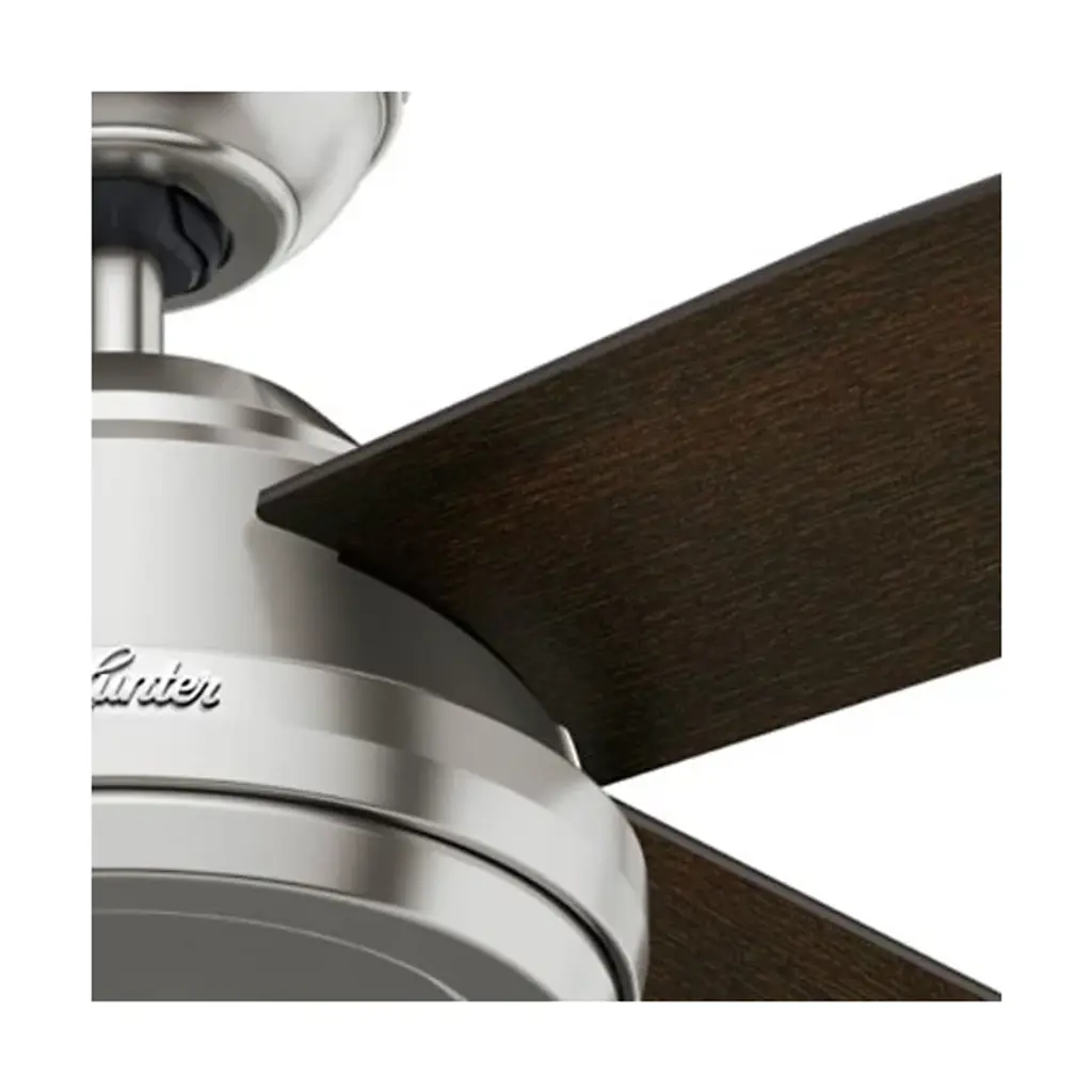Contemporary in design, the Dempsey Ceiling Fan by Hunter Fans easily fits into living spaces without drawing too much attention itself. Four wood-toned ceiling fan blades efficiently cool a room in as little time possible. A sleek and minimal design make it ideal for bedrooms, living rooms, and offices.