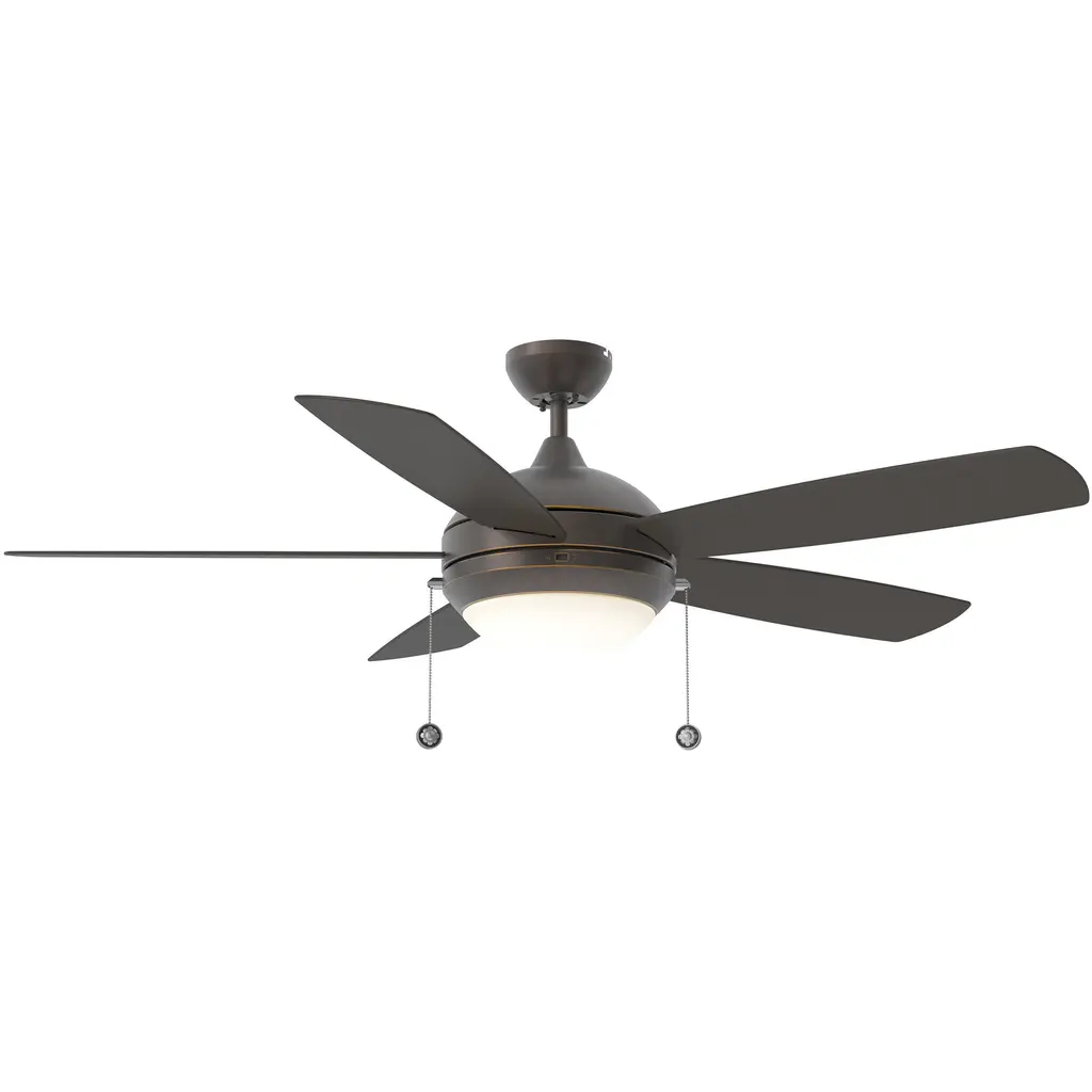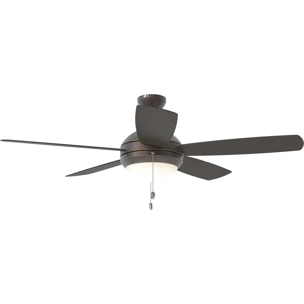 The Discus 52 LED in Roman Bronze features a 153.0 X 18.0 3-speed motor with a Twelve-degree blade pitch. With a minimalist, contemporary design and six color/finish options, the Discus 52 LED ceiling fan complements a wide variety of room styles. Discus features an integrated 20W LED downlight with a matte opal glass shade for functionality with flair. A pull chain controls this 3-speed fan, however a handheld or wall mount remote control is compatible and sold separately.