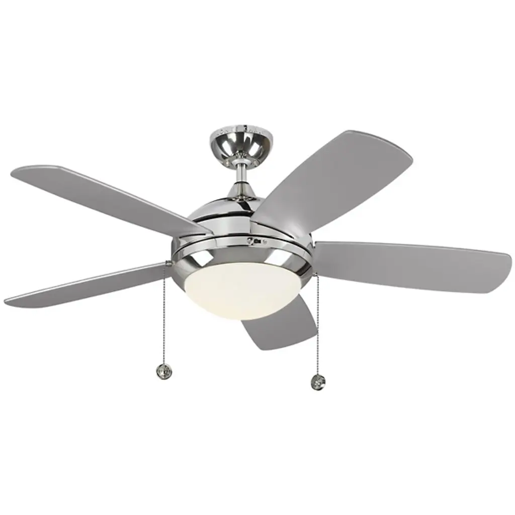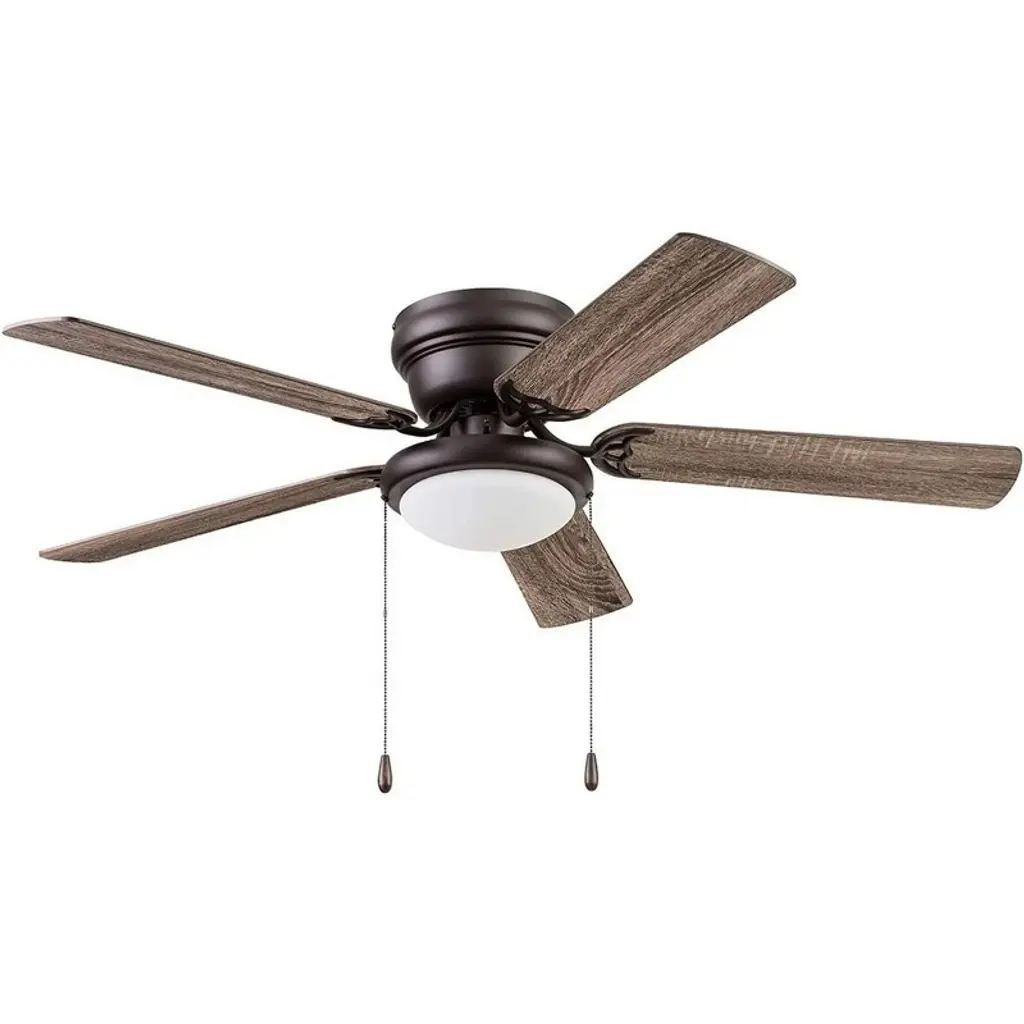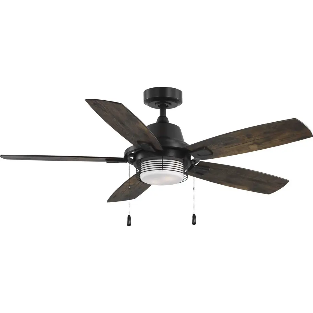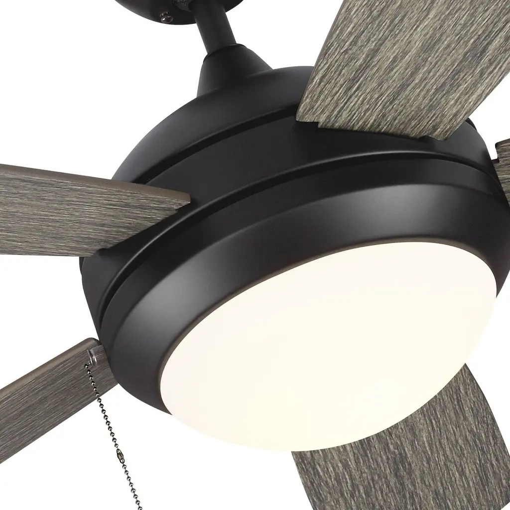 Featuring five clean-lined blades with a 12-degree pitch and weathered oak finish, this minimalist ceiling fan operates with an energy-efficient, three-speed motor controlled by a pull chain. An integrated 20W LED downlight is covered with a matte opal glass shade. For indoor use only.