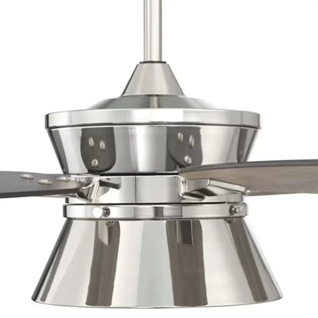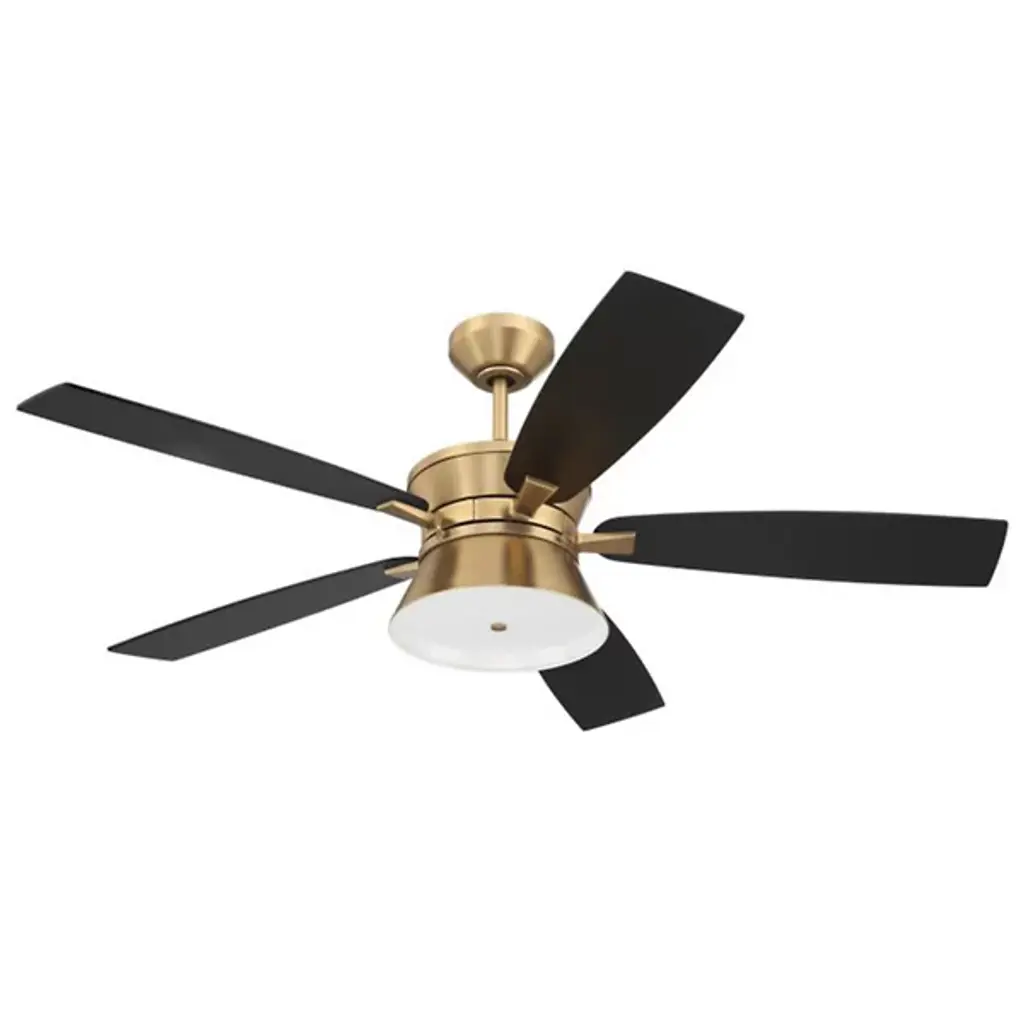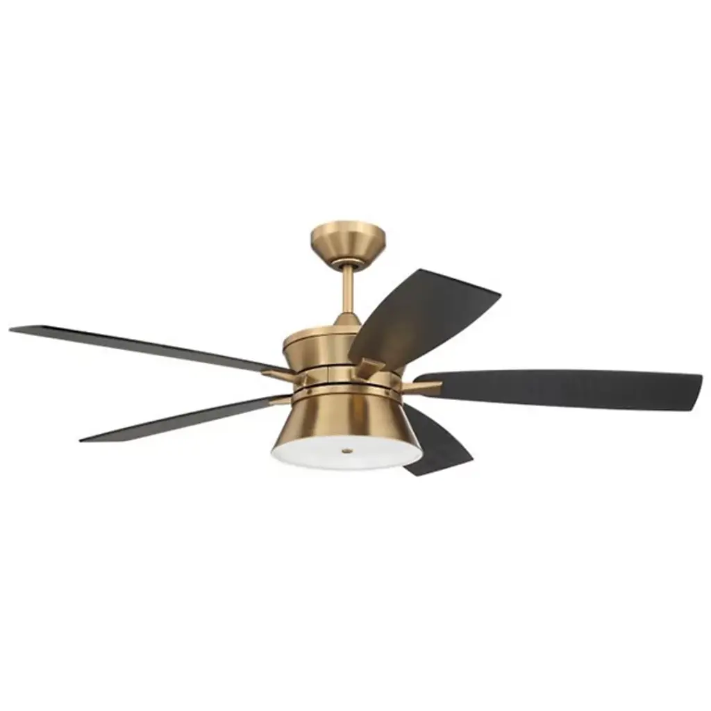 The Dominick Smart Ceiling Fan from Craftmade Fans is a luminous addition to your space that features an acrylic shade. This smart fan is composed of silicon, steel, copper, plywood, and aluminum, embodying quality craftsmanship. It is powered by a DC motor and features 5 blades operating in forward and reverse directions. With 6 speeds, you have ultimate customization capabilities for unrivaled comfort. It comes with a convenient handheld control.