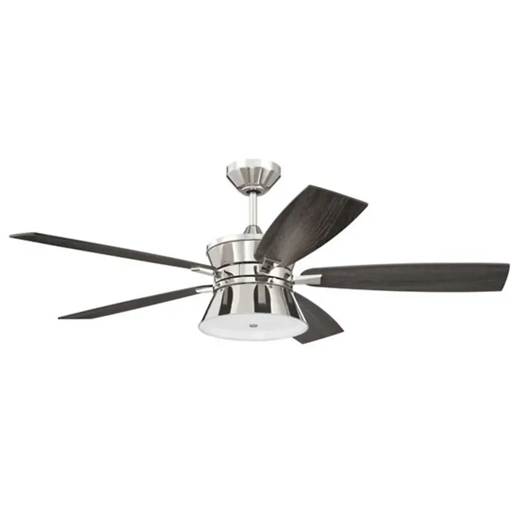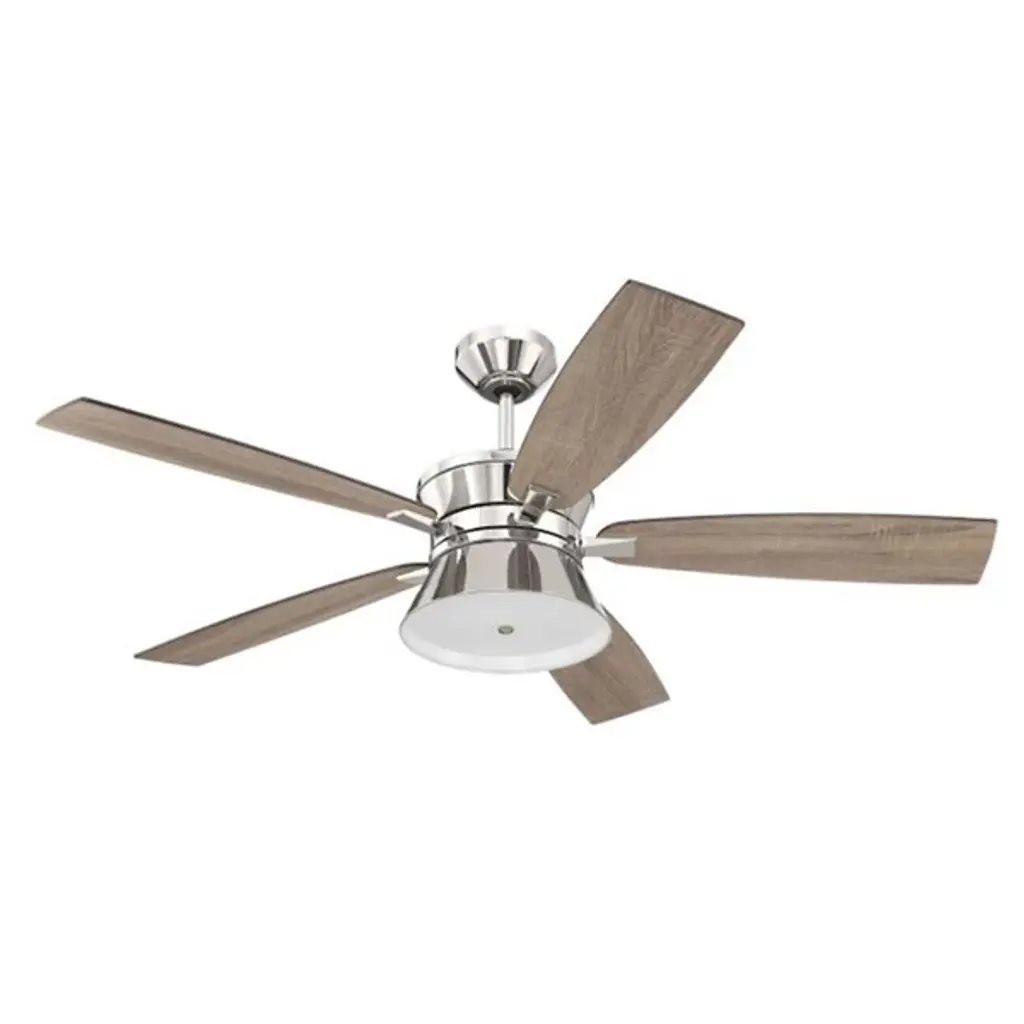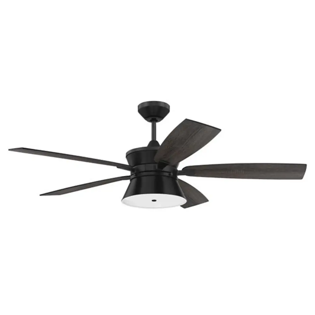 The Dominick Smart Ceiling Fan from Craftmade Fans is a luminous addition to your space that features an acrylic shade. This smart fan is composed of silicon, steel, copper, plywood, and aluminum, embodying quality craftsmanship. It is powered by a DC motor and features 5 blades operating in forward and reverse directions. With 6 speeds, you have ultimate customization capabilities for unrivaled comfort. It comes with a convenient handheld control.