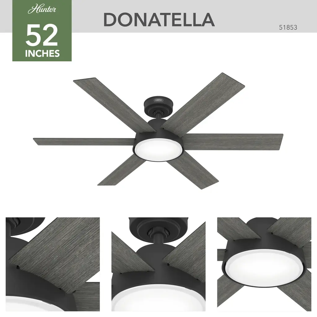 Donatella 52 Inch Matte Black With Dark Gray Oak/matte Black Blades Ceiling Fan