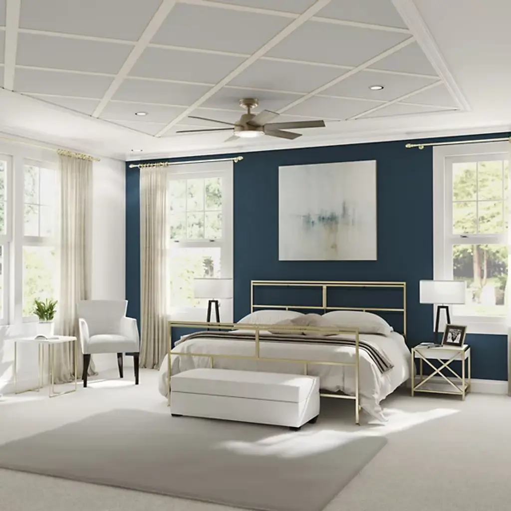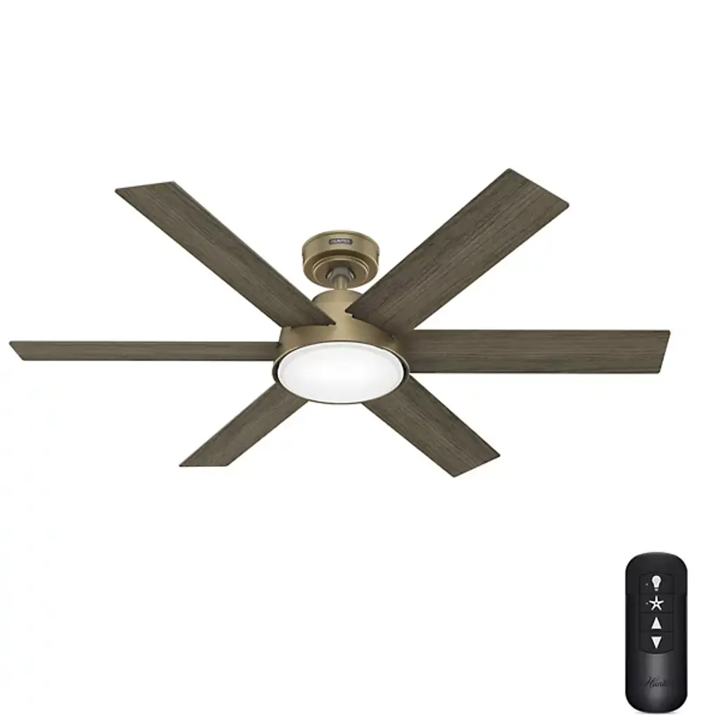 The Donatella LED Ceiling Fan boasts a svelte design and modern, fresh finishes, making a grand statement for large spaces. It features a reversible motor with WhisperWind® technology to provide quiet comfort in your home through summer or winter. Mix and match with other fans or fixtures to incorporate light and airflow into locales of choice.