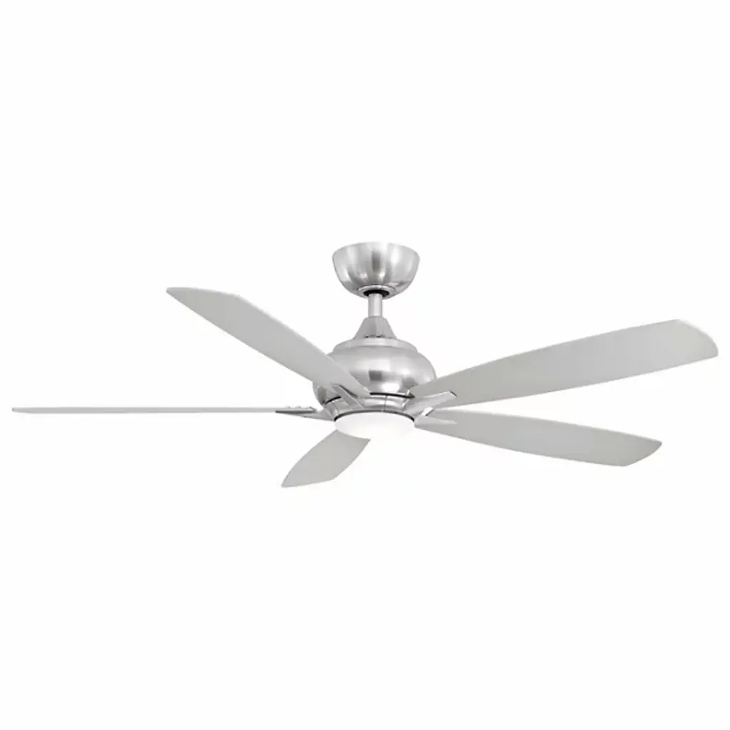 A design where the looks match the functionality. Fresh, modern styling pairs up with remote-controlled comfort in the Doren LED Ceiling Fan from Fanimation Fans. A tidy figure is dictated by the rounded forms of a domed canopy and a plump housing cover. At the base, a starry formation of brackets holds up a group of stylish wooden blades, oriented at an angle to unlock their reversible function. Set its speed to any of the 3 settings and be treated to a sweeping breeze of air. LED light passing through an opal glass diffuser helps set the ambiance in a room with an inviting glow.