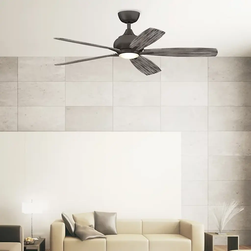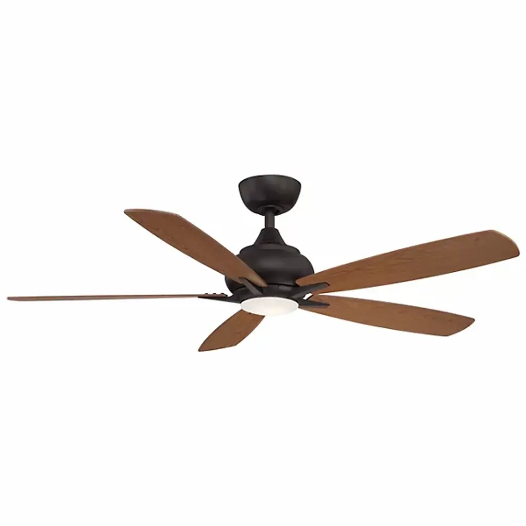 A design where the looks match the functionality. Fresh, modern styling pairs up with remote-controlled comfort in the Doren LED Ceiling Fan from Fanimation Fans. A tidy figure is dictated by the rounded forms of a domed canopy and a plump housing cover. At the base, a starry formation of brackets holds up a group of stylish wooden blades, oriented at an angle to unlock their reversible function. Set its speed to any of the 3 settings and be treated to a sweeping breeze of air. LED light passing through an opal glass diffuser helps set the ambiance in a room with an inviting glow.
