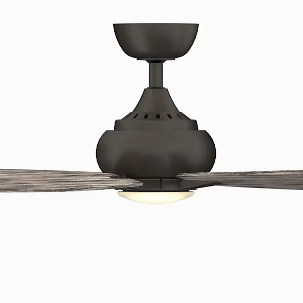 A design where the looks match the functionality. Fresh, modern styling pairs up with remote-controlled comfort in the Doren LED Ceiling Fan from Fanimation Fans. A tidy figure is dictated by the rounded forms of a domed canopy and a plump housing cover. At the base, a starry formation of brackets holds up a group of stylish wooden blades, oriented at an angle to unlock their reversible function. Set its speed to any of the 3 settings and be treated to a sweeping breeze of air. LED light passing through an opal glass diffuser helps set the ambiance in a room with an inviting glow.