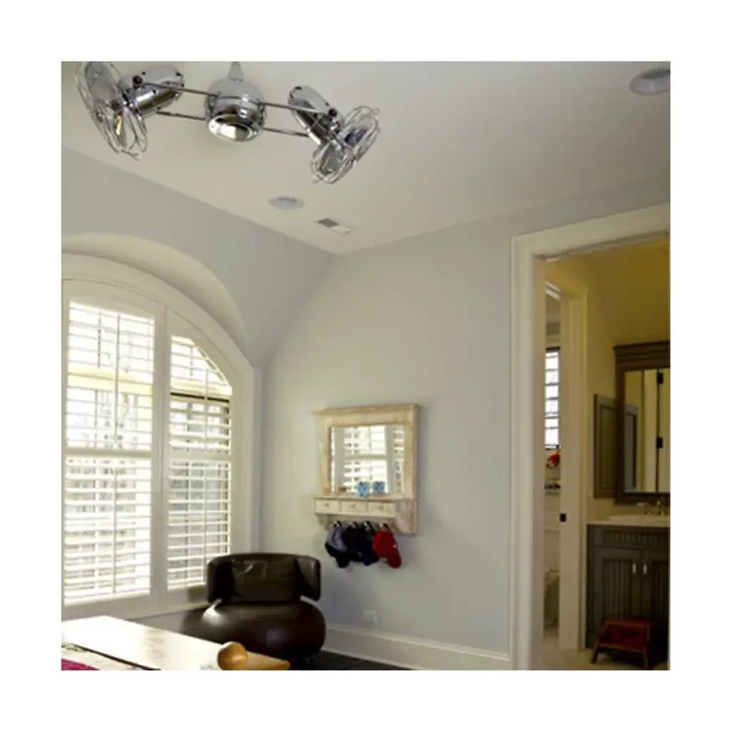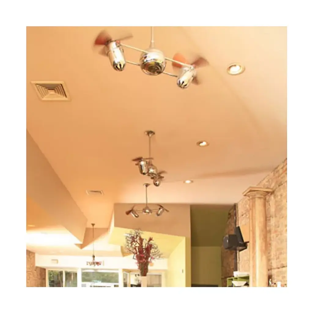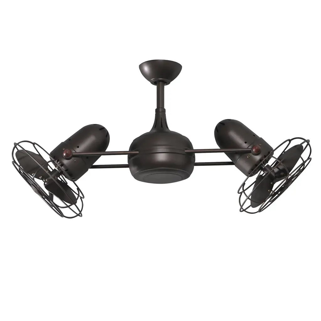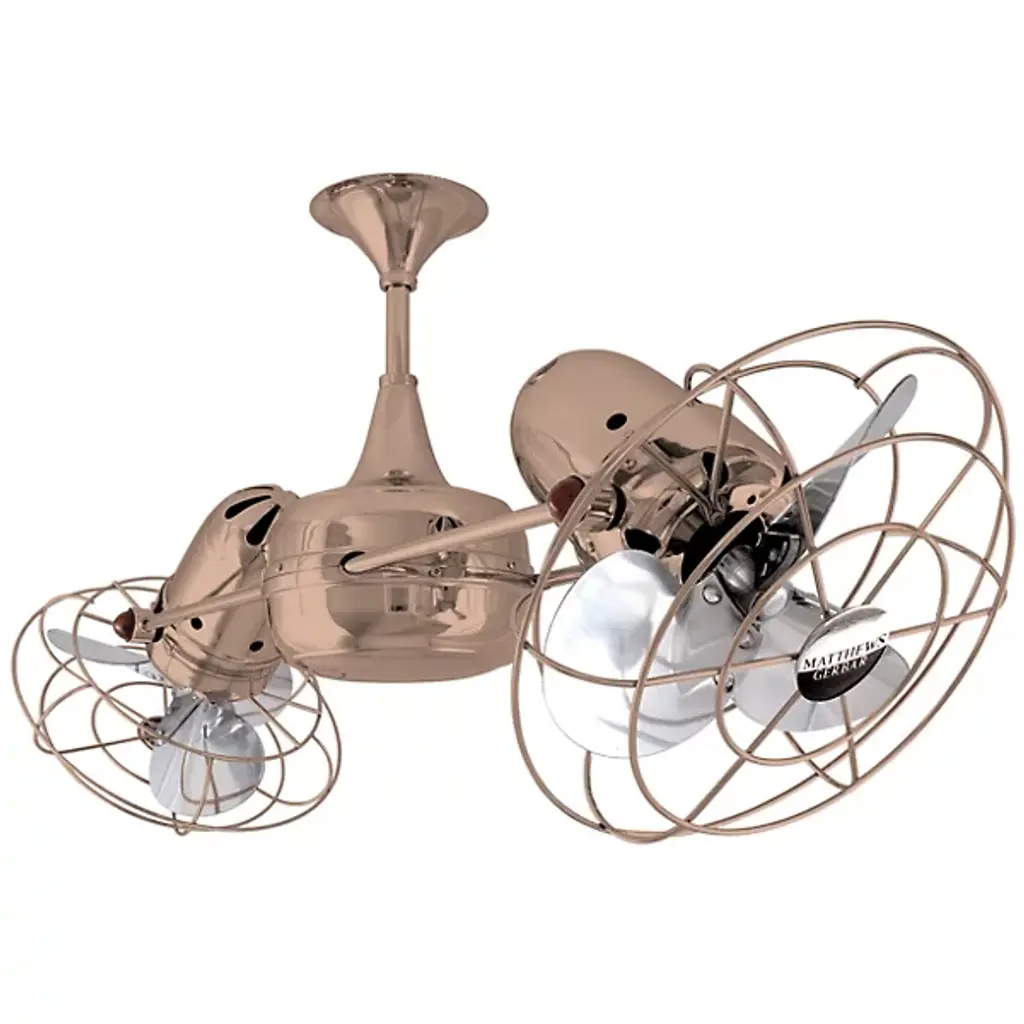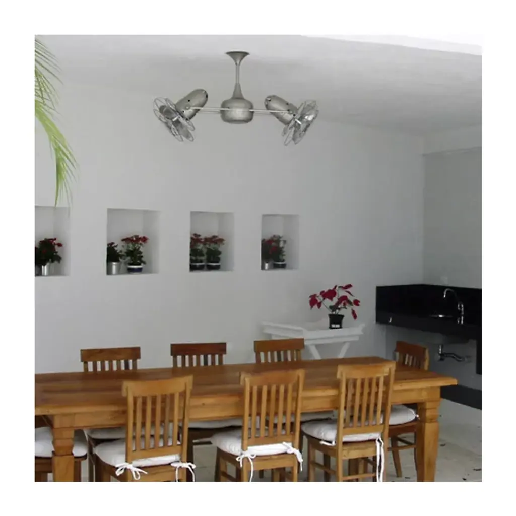The Matthews Fan Duplo-Dinamico Ceiling Fan treats the eyes to new sophistication in fan design and circulates air more efficiently than traditional paddle fans. The Duplo-Dinamico Fan features dual motors and a 360-degree rotation. The metal blade option is suitable for outdoor installation, under a fully covered porch.