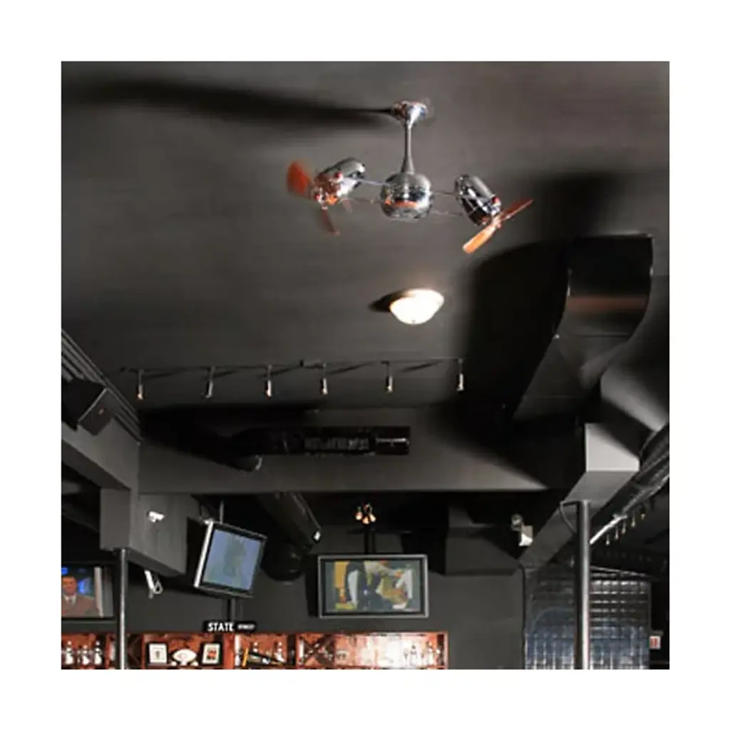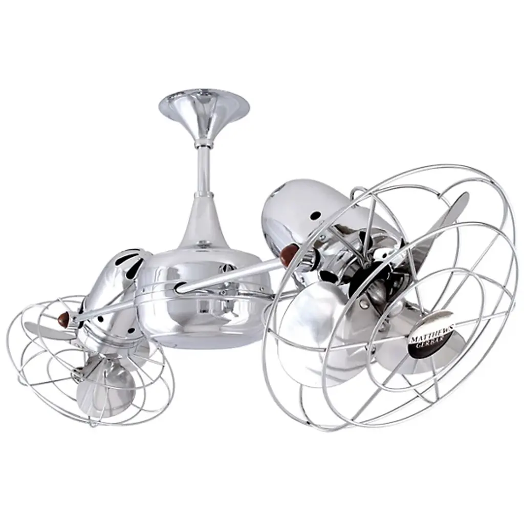 The Matthews Fan Duplo-Dinamico Ceiling Fan treats the eyes to new sophistication in fan design and circulates air more efficiently than traditional paddle fans. The Duplo-Dinamico Fan features dual motors and a 360-degree rotation. The metal blade option is suitable for outdoor installation, under a fully covered porch.