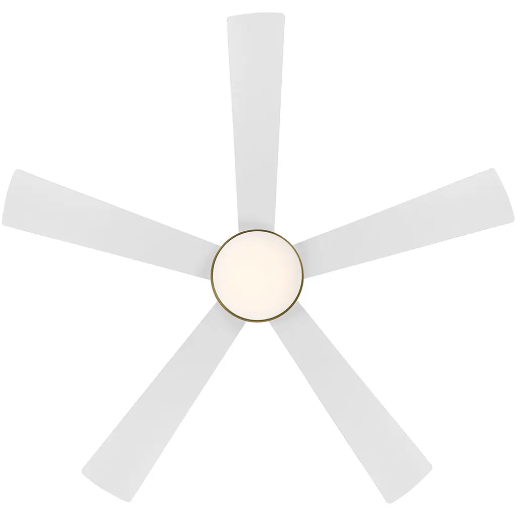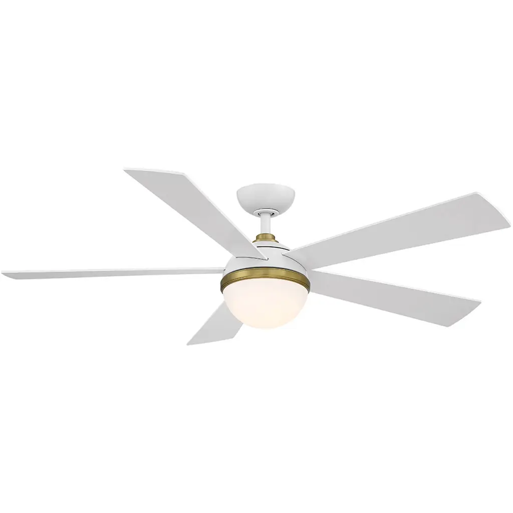 Eclipse 54 Inch Matte White Matte White Soft Brass With Matte White Blades Downrod Ceiling Fans In Satin Brass Matte White, Smart Fan