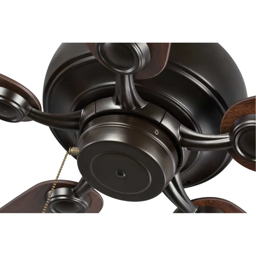 This energy efficient and lightweight 52 in fan offers clean lines and a design that complements modern interiors. Edgefield features an updated and stylish shell-shaped blade holder that contains five sweeping blades. A three-speed pull chain and a manual reverse switch come standard with design. Rich Architectural Bronze finish.
