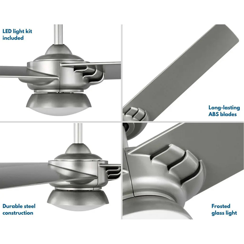 Achieve a sleek, modern look with the Edwidge Collection 3-Blade Painted Nickel 52-Inch DC Motor LED Contemporary Ceiling Fan.The non-metallic, rust-proof housing, canopy, and blades are coated in a silver-painted nickel finish. Blades are crafted from a strong, all-weathered ABS material to prevent warping.
