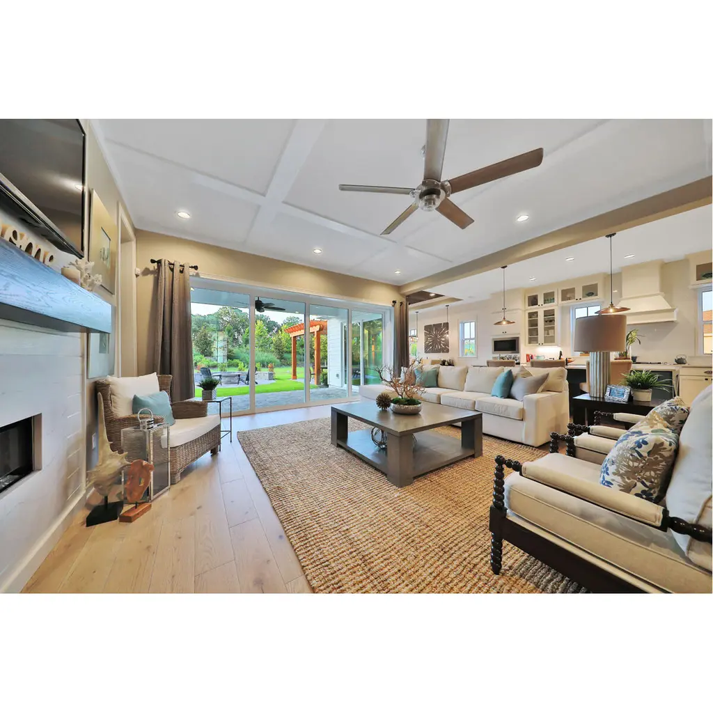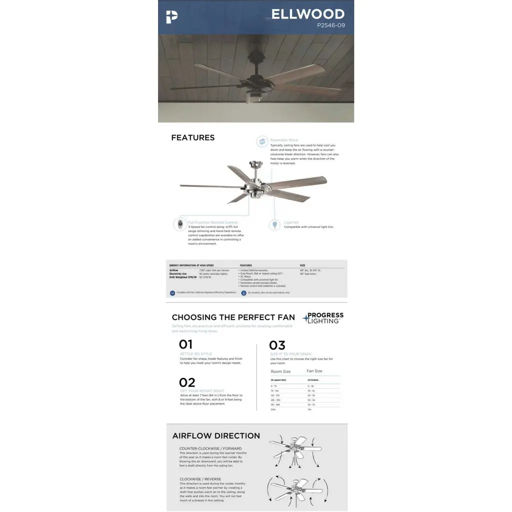 A picture of modern design, the functional minimalism of the Brushed Nickel Ellwood 68 inch ceiling fan is a product of advanced design. Five long and graceful blades made of carved wood move air with remarkable efficiency. A remote with batteries is included – and controls full range dimming and fan speed capabilities.
