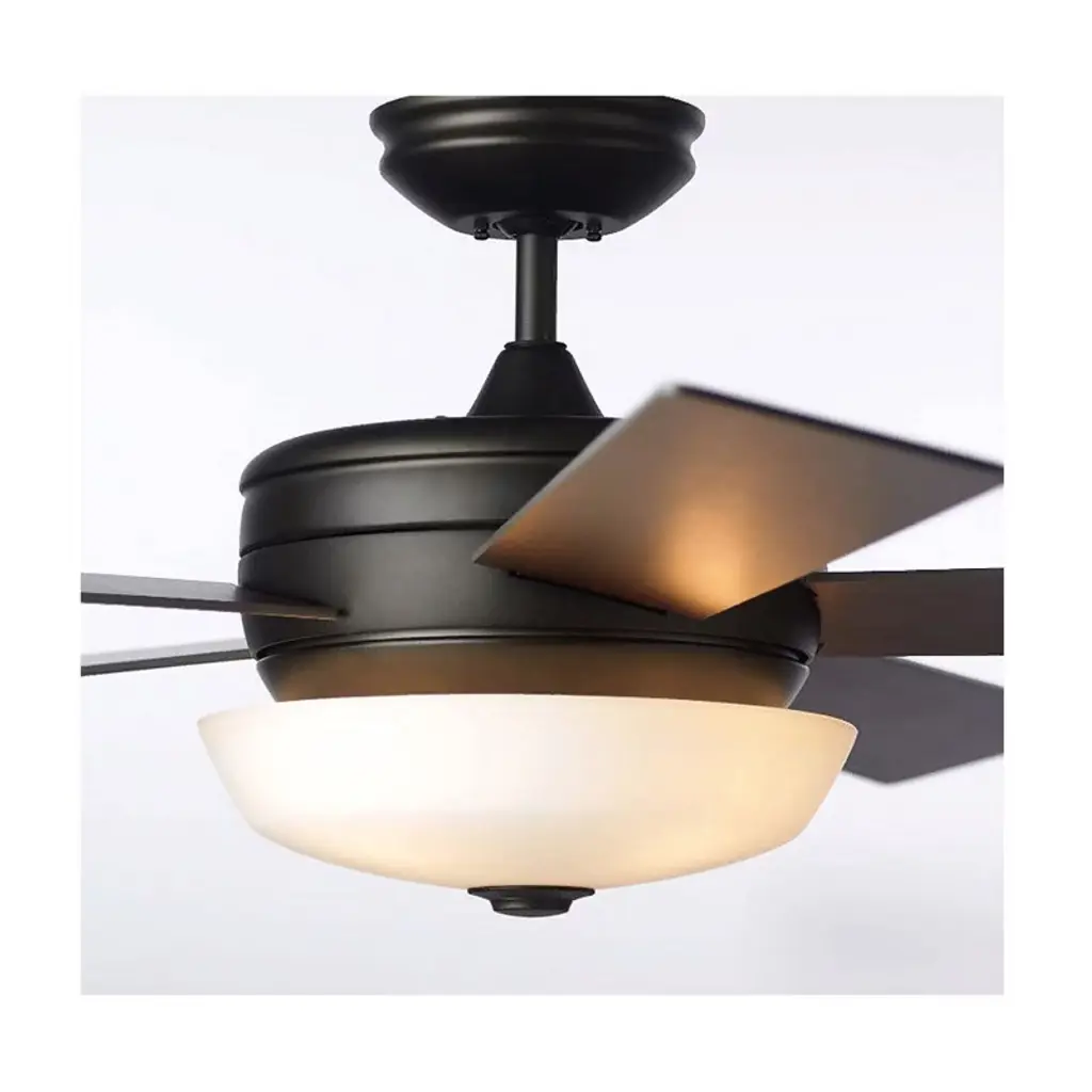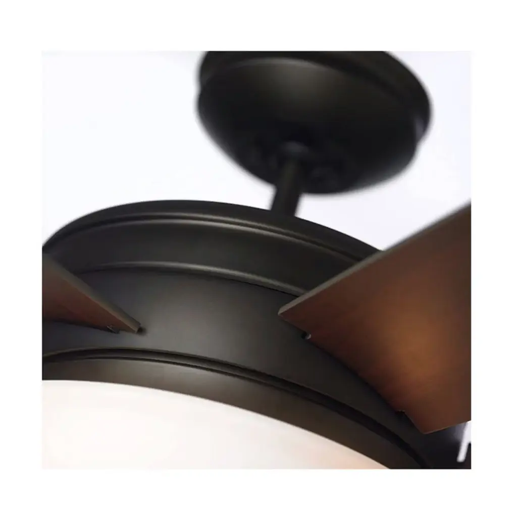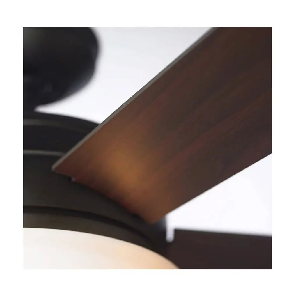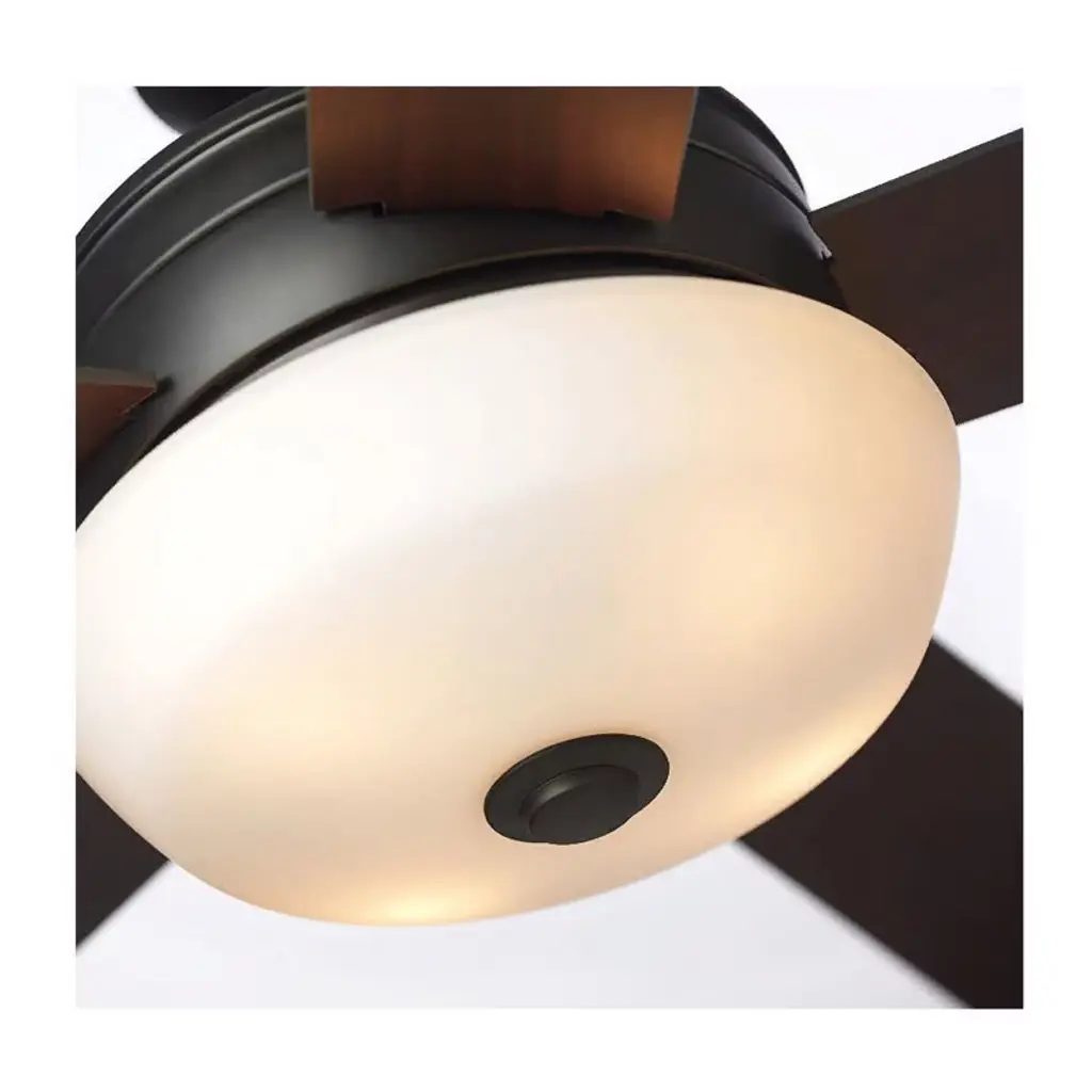 Emerson Cronley 54" Ceiling Fan with Light Fixture and Remote, Oil Rubbed Bronze This 54-inch indoor ceiling fan blends traditional charm with modern convenience. It features Dark Cherry blades and an opal matte glass light fixture to complement any room décor. Key Features: • 54" blade span with Oil Rubbed Bronze finish • Dark Cherry wood-finish blades and opal matte glass light cover • Includes 4-speed remote control and 4-1/2" downrod • Integrated light fixture with four E26 bulbs (included) • Ideal for enhancing traditional or transitional indoor spaces