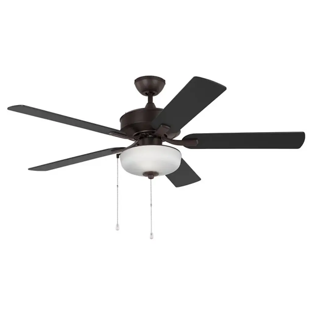 The Emerson Plus Ceiling Fan by Alder & Ore brings a bright, comfortable touch to spaces with a handsome, tailored look. Paired with a smooth glass shade that evenly diffuses a layer of illumination onto surroundings, this five-blade fan is paired with a set of pull chains that make selecting between the available fan speeds and reversible option simple. A premium power, torque-induction motor moves this fan through its three-speed settings quietly, ensuring that there is no excess noise as it cools off a room.
