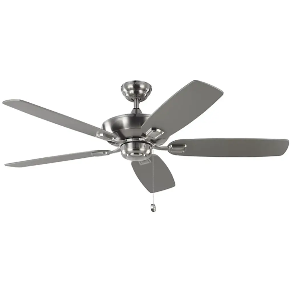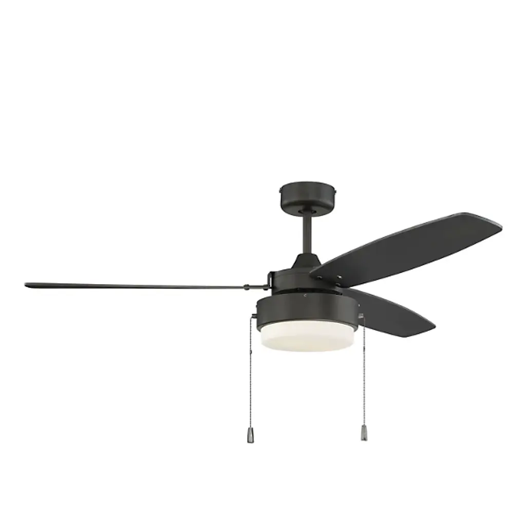 The Eos Ceiling Fan with Light Kit from Craftmade Fans combines premium materials, including aluminum, wood, glass, steel, and copper. It has 5 reversible blades that function in both forward and reverse for your convenience, creating customized airflow. The integrated light kit, adorned with frost-white glass, allows the LEDs to radiate brilliant illumination from above. This fan is controlled by a convenient pull chain for hassle-free operation. The fan is secured through attachment to a downrod and a ceiling canopy.