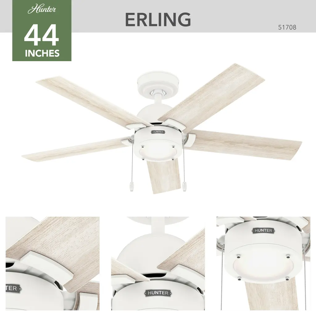 Erling 44 Inch Matte White With Bleached Alder/fresh White Blades Ceiling Fan