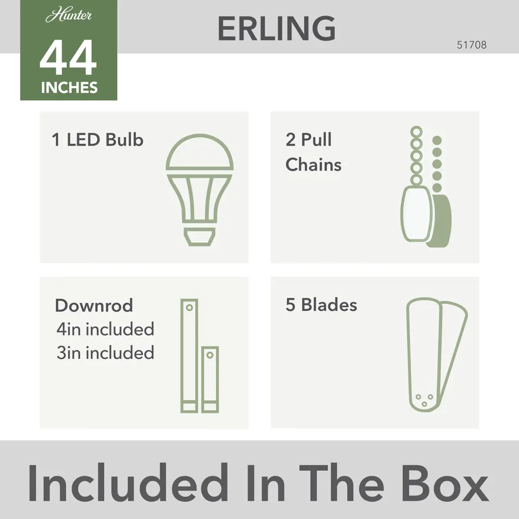 Make a bold statement in Hunter’s Erling ceiling fan with an LED light. Built with Hunter’s SureSpeed® Guarantee, this fan was engineered to deliver optimized airflow to your home’s smaller spaces and could be a perfect match for your mudroom, home office, or foyer. As easy to install as it is to admire, the Erling is a smart choice to stay cool.