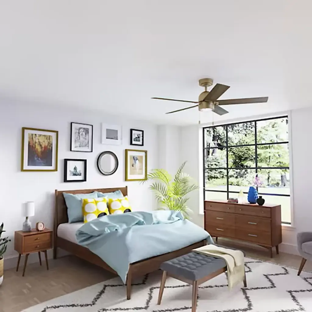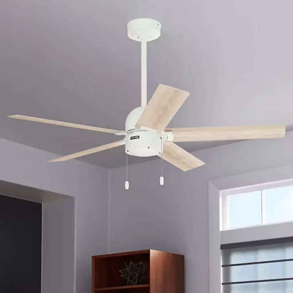 Handsome looks and inviting functionality underscore the Erling LED Ceiling Fan from Hunter Fans. The piece's clean outlines and materials complement a range of home styles. Its powerful engine delivers energy with a whisper-quiet, low-wobble operation. The engine provides a trio of speed settings and reversible functionality. Its housing cover features a clean round shape with sharp angular blades radiating from it. The blades move swiftly for enhanced comfort. This piece turns on with a pull-chain setup.