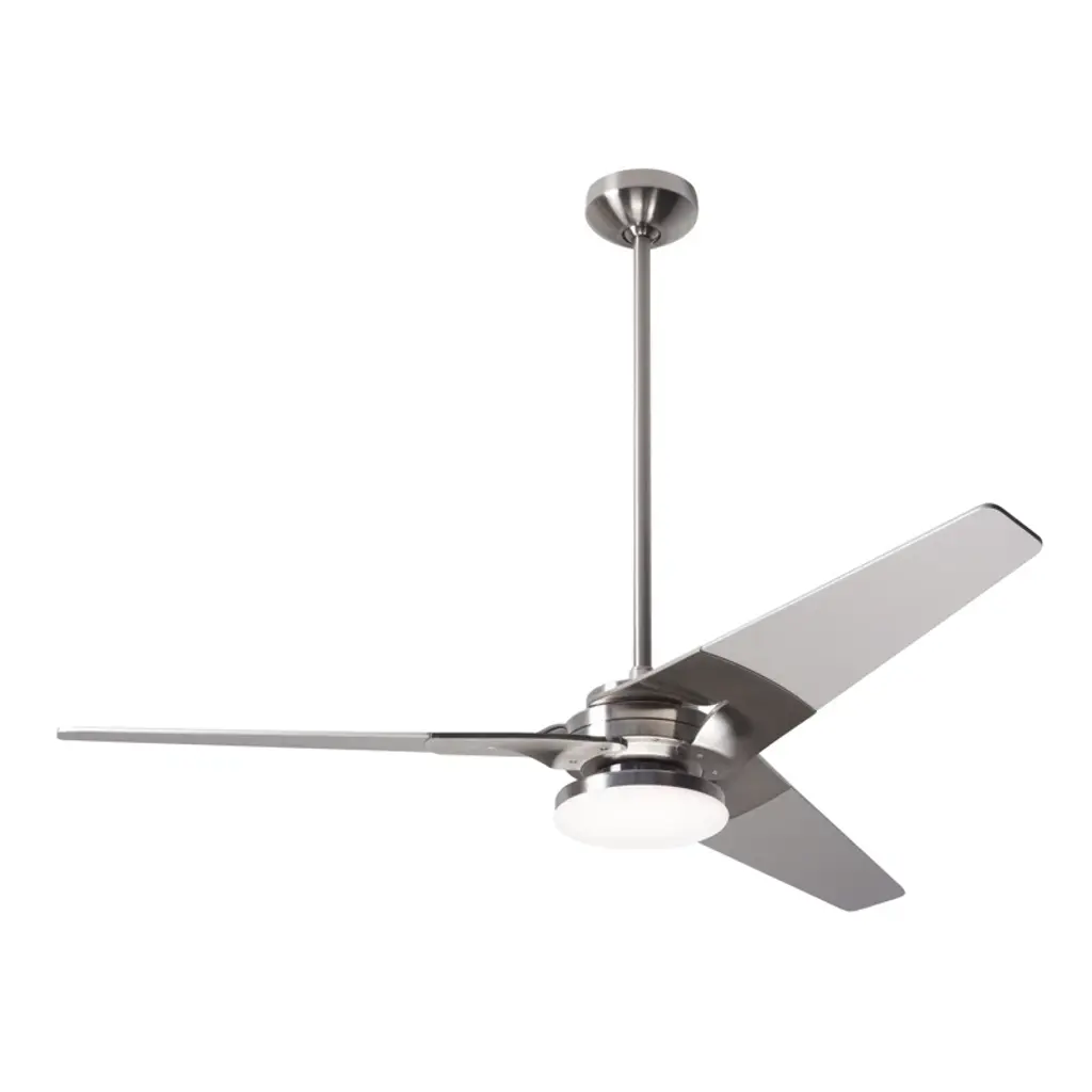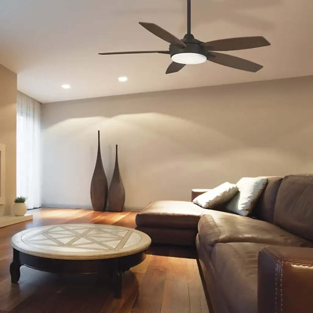 Spanning 52 inches in diameter, the Espace fan produces powerful airflow, and its small size is perfect for indoor spaces. The Espace LED ceiling fan by Minka Aire Fans is a traditional fan with an undeniably contemporary look. Composed of high-quality polymer and metal, this fan is easy to install and is intended to withstand years of use. A convenient, handheld remote control is included to make controlling the fan speed and light intensity simple.