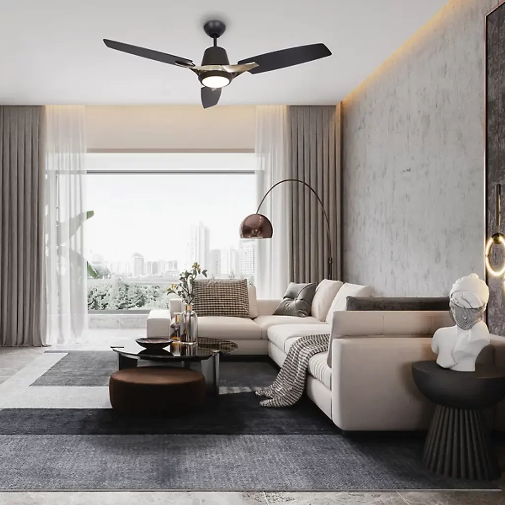 The Eunoia LED Smart Ceiling Fan by Carro USA gives your living space a look of refinement. An exquisite crowning addendum rests over the top of an LED light shaded by the glass. This LED effortlessly illuminates your home setting so that you never miss a moment with friends and family. Keep everybody in a relaxed, cool state when the days become hot. A motor is neatly concealed, allowing a group of blades to easily rotate, circulating the air to your liking. This fan functions at multiple speeds and comes with a wall control.
