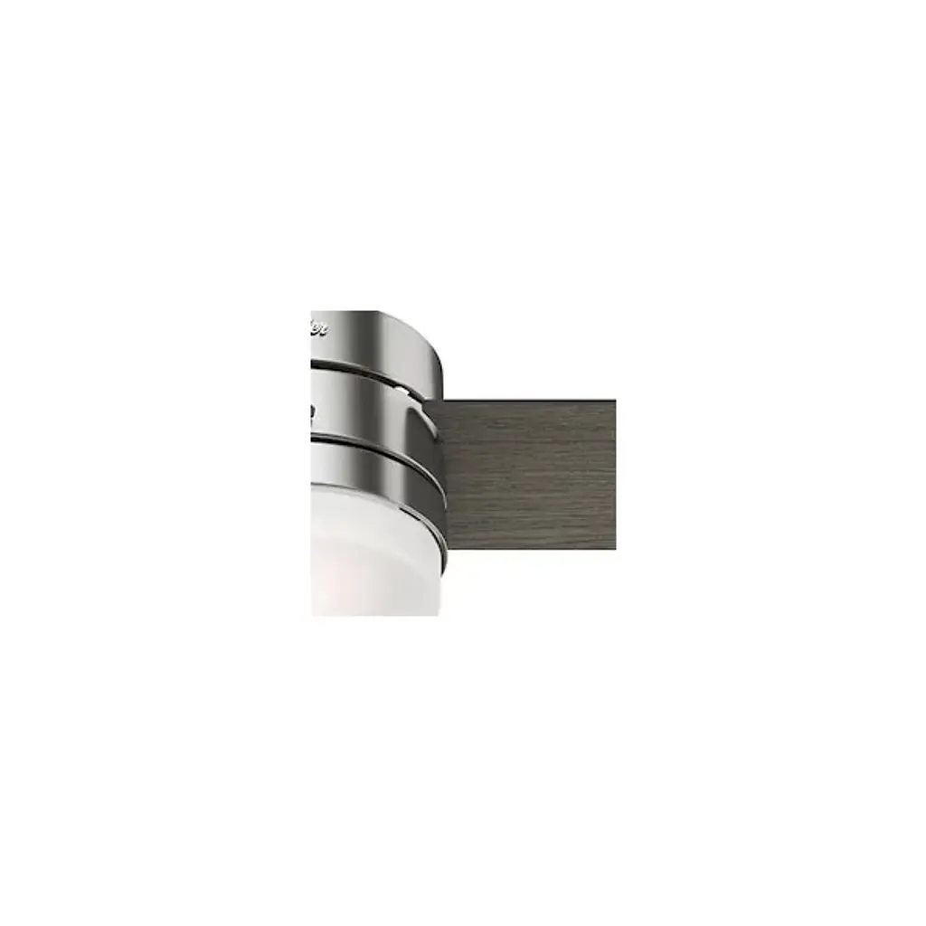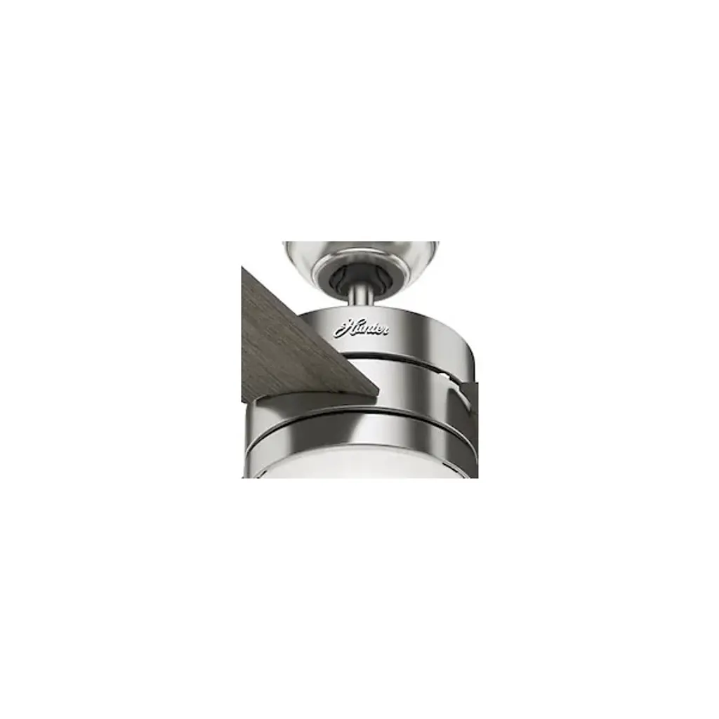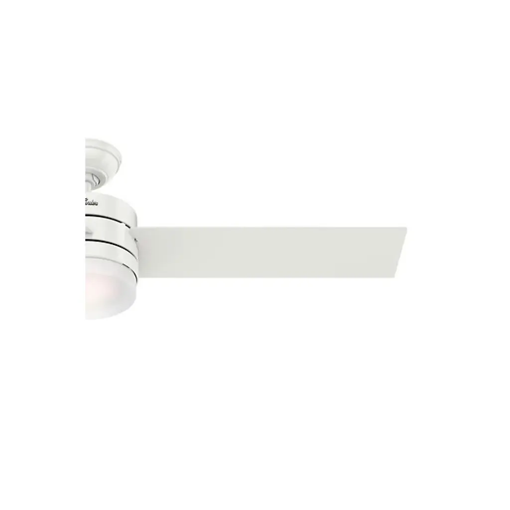 Update your space with the sleek and simple stylings of the Exeter Ceiling Fan by Hunter Fans. Featuring a powerful WhisperWind motor, this fixture sends airflow peacefully throughout the room via a set of three rectangular blades. Three speeds allow for a customizable atmosphere, while its LED lamping provides practical illumination. This versatile fixture can be controlled by a wireless remote, making it easy to create a relaxing at-home oasis.