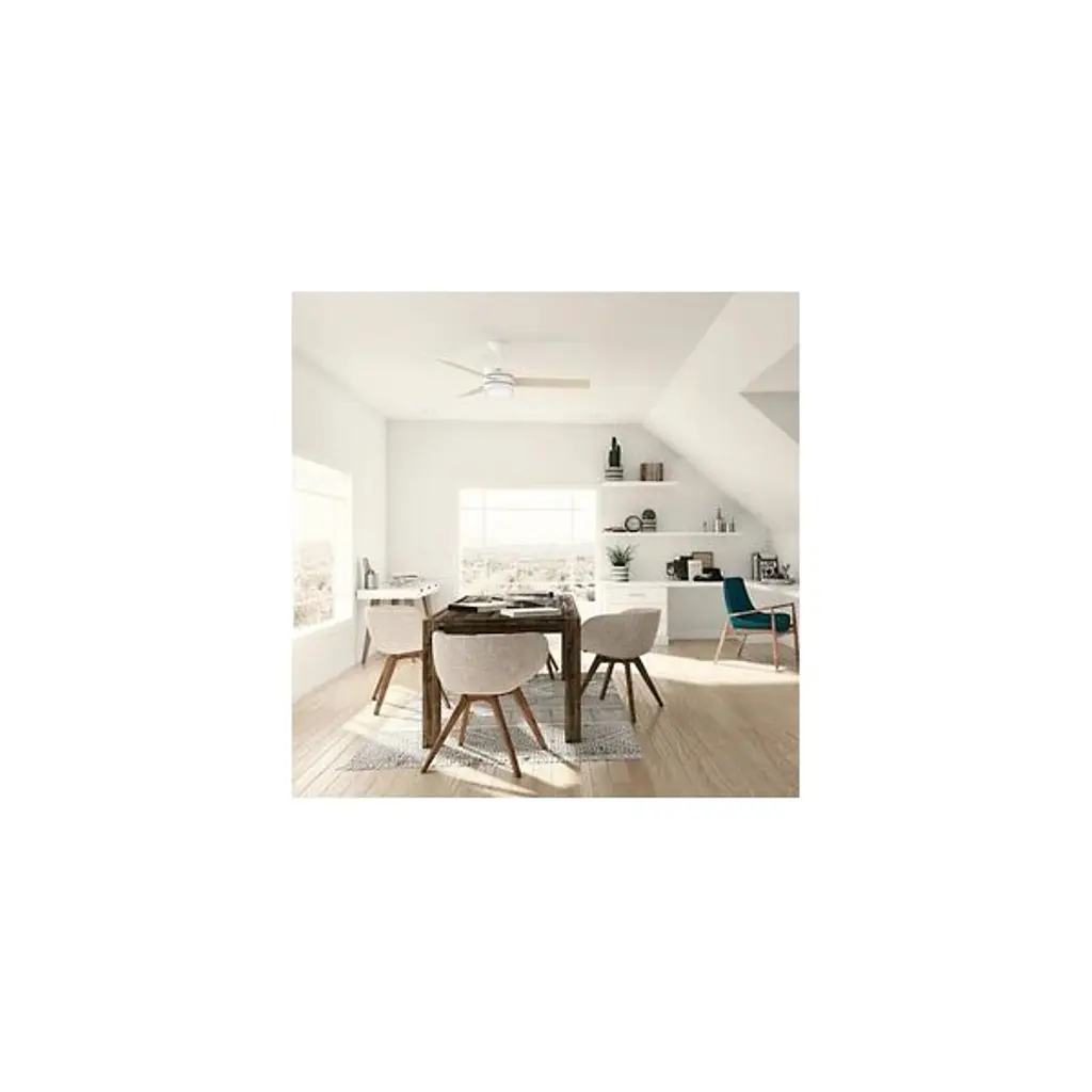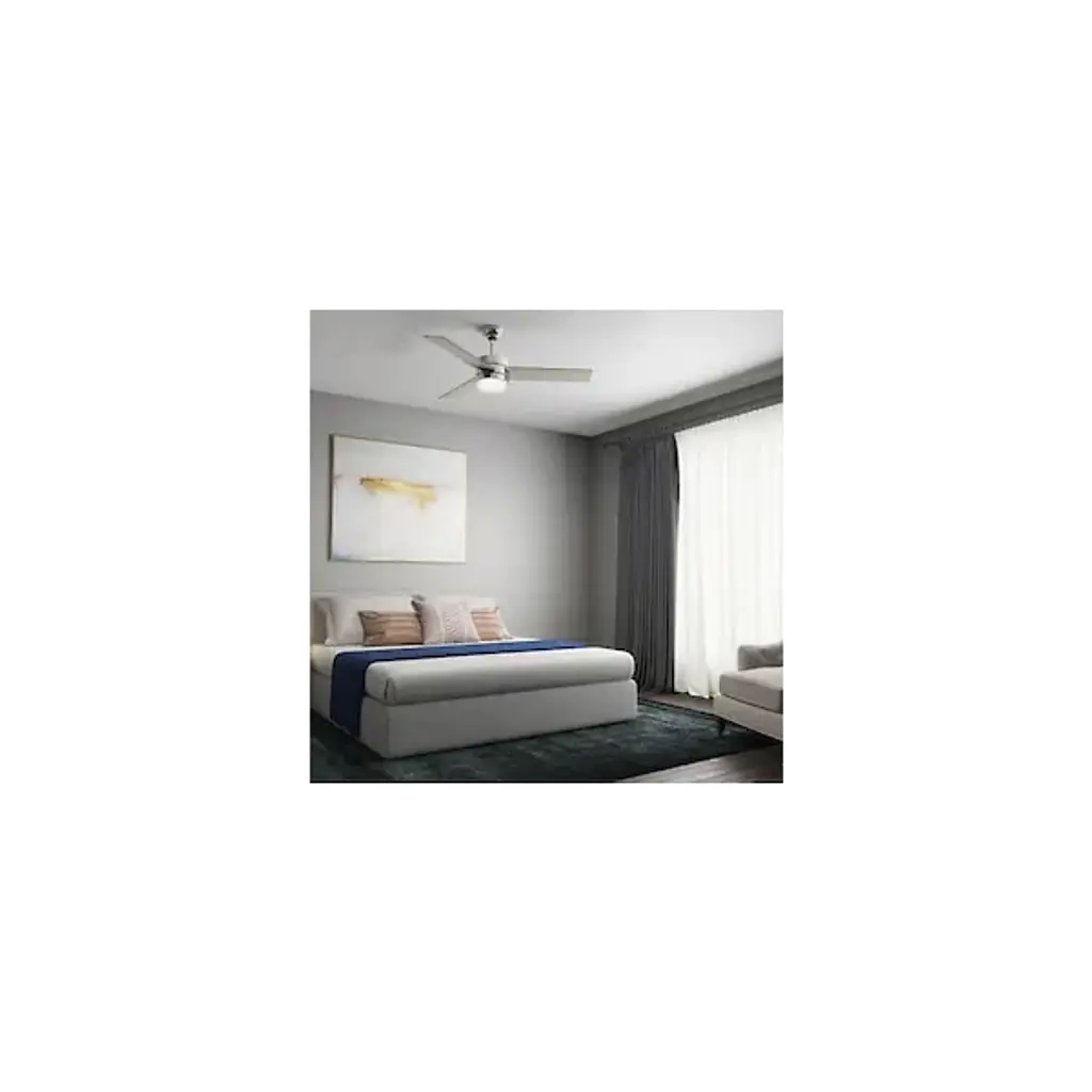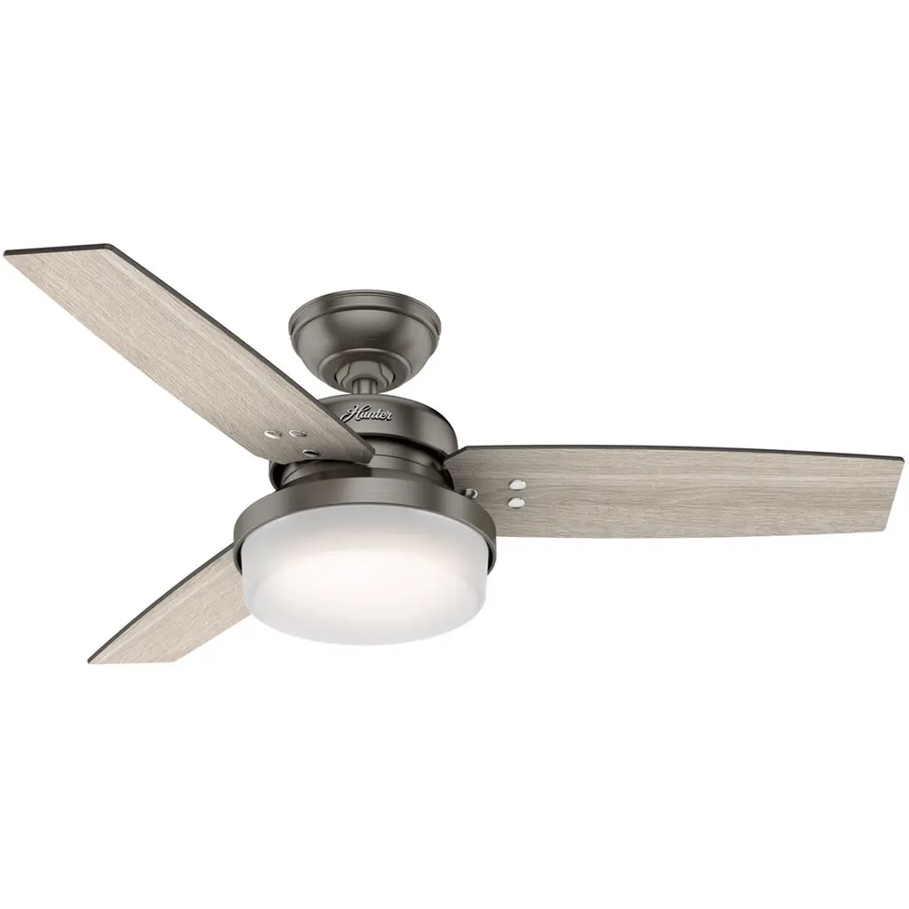 Update your space with the sleek and simple stylings of the Exeter Ceiling Fan by Hunter Fans. Featuring a powerful WhisperWind motor, this fixture sends airflow peacefully throughout the room via a set of three rectangular blades. Three speeds allow for a customizable atmosphere, while its LED lamping provides practical illumination. This versatile fixture can be controlled by a wireless remote, making it easy to create a relaxing at-home oasis.