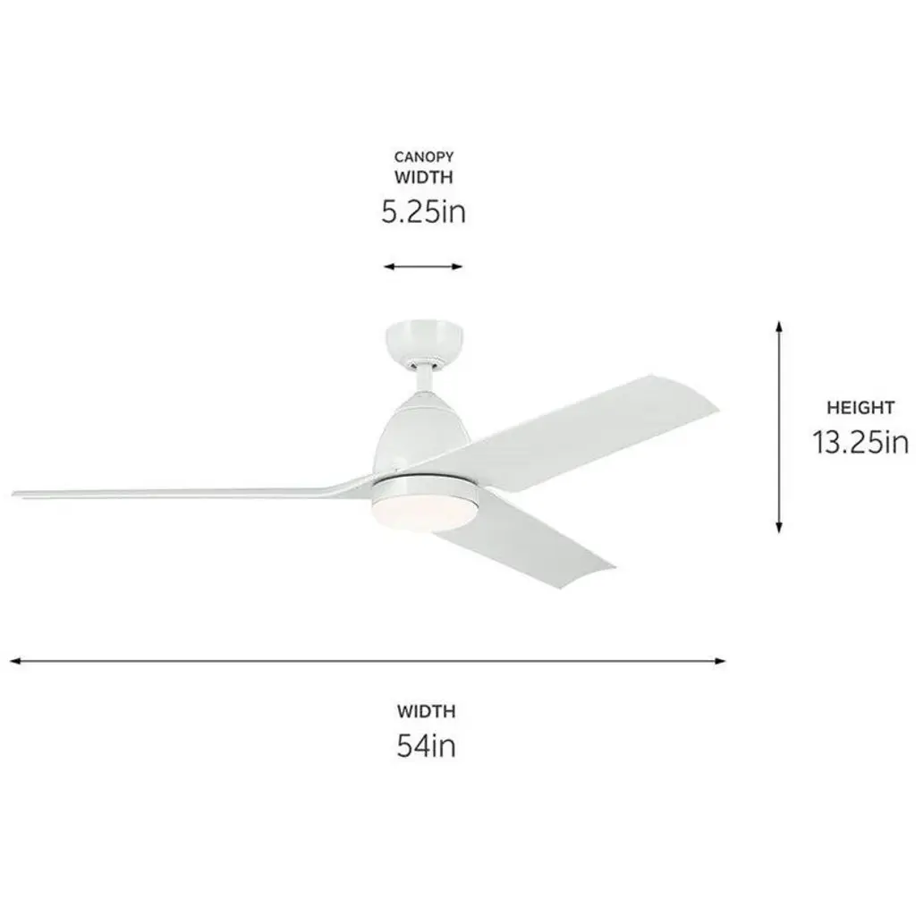 54 Inch Fit Ceiling Fan with Satin Etched Cased Opal Glass in White with White Blades